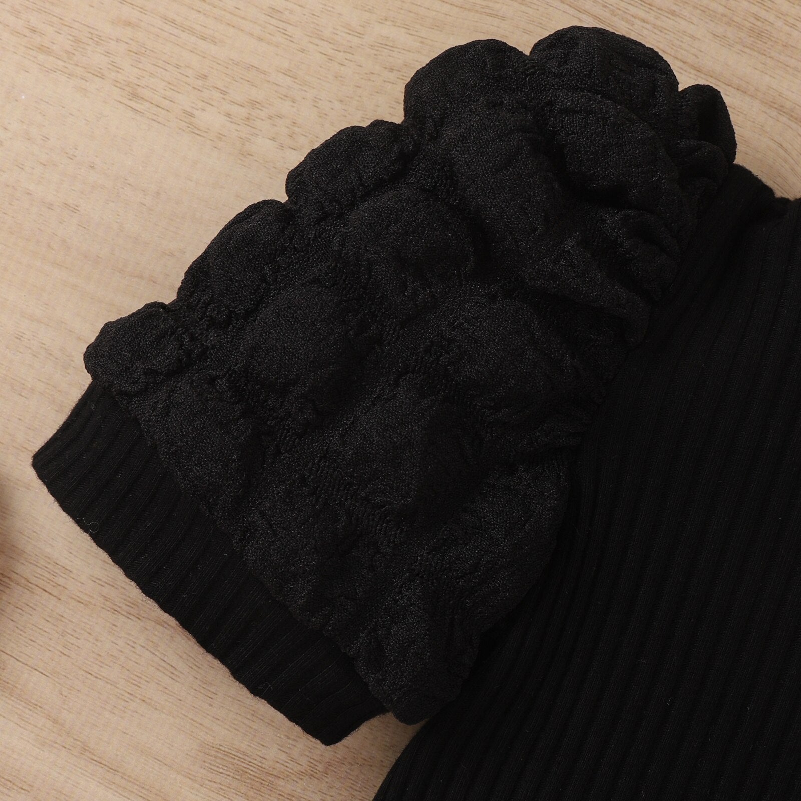 Conjunto de 2 piezas de tops de manga corta abullonada + falda con cinturón a cuadros