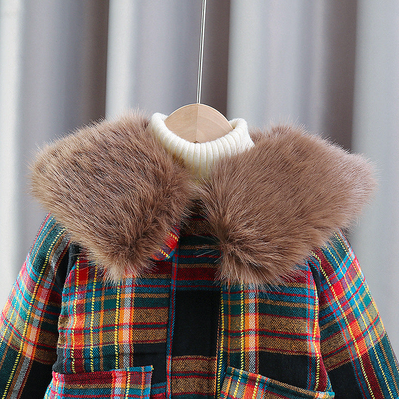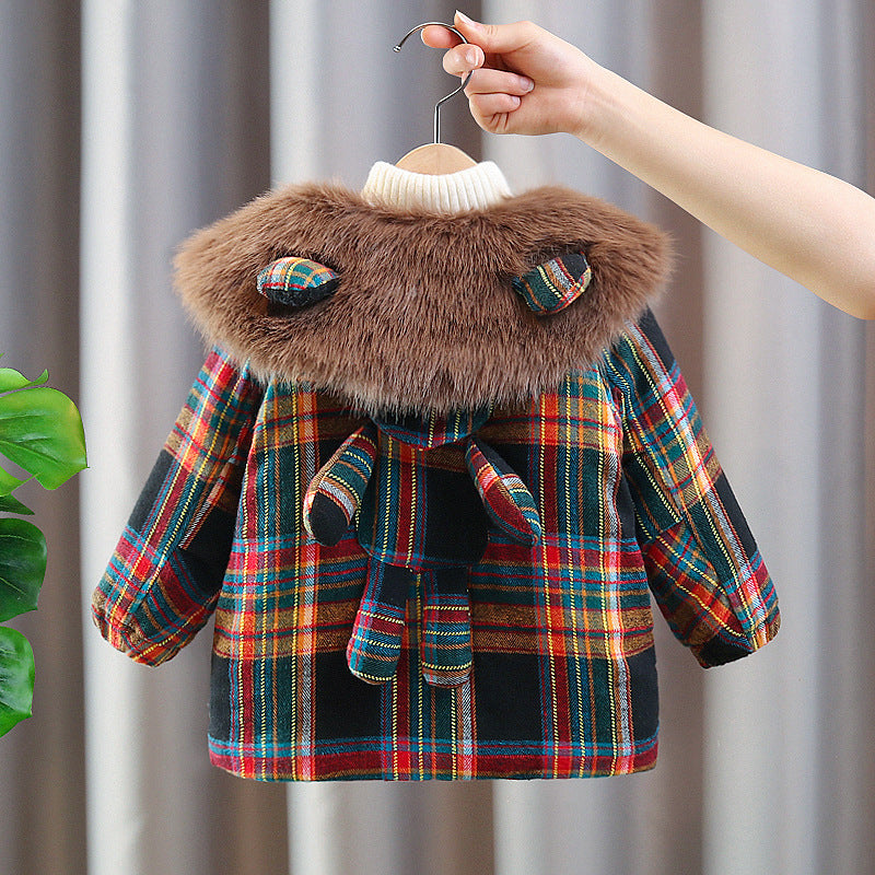 Abrigo de Cuadros para Niños con Pelo y Osito de Peluche