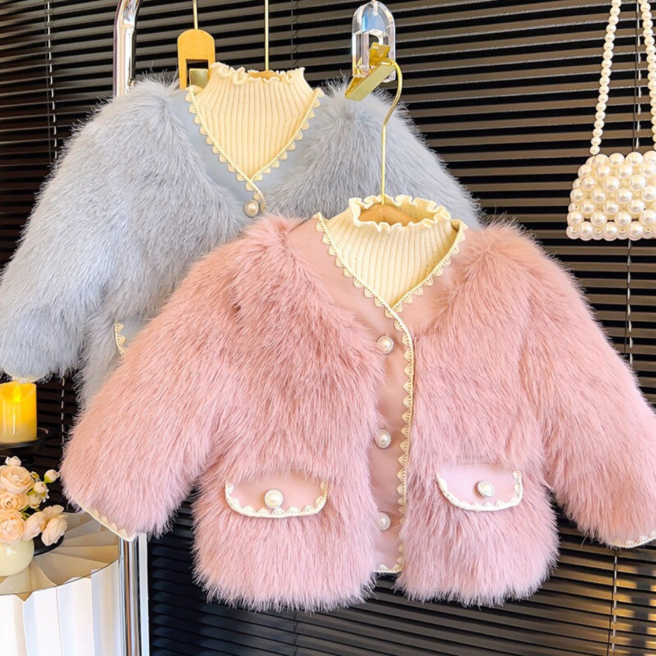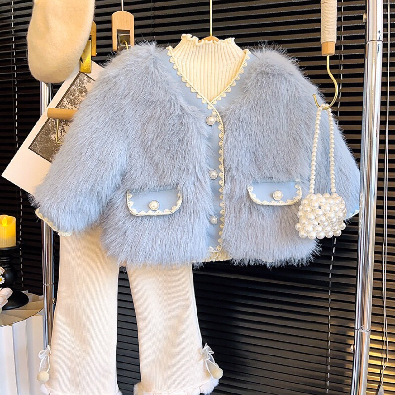 Abrigo de piel y perlas para niña