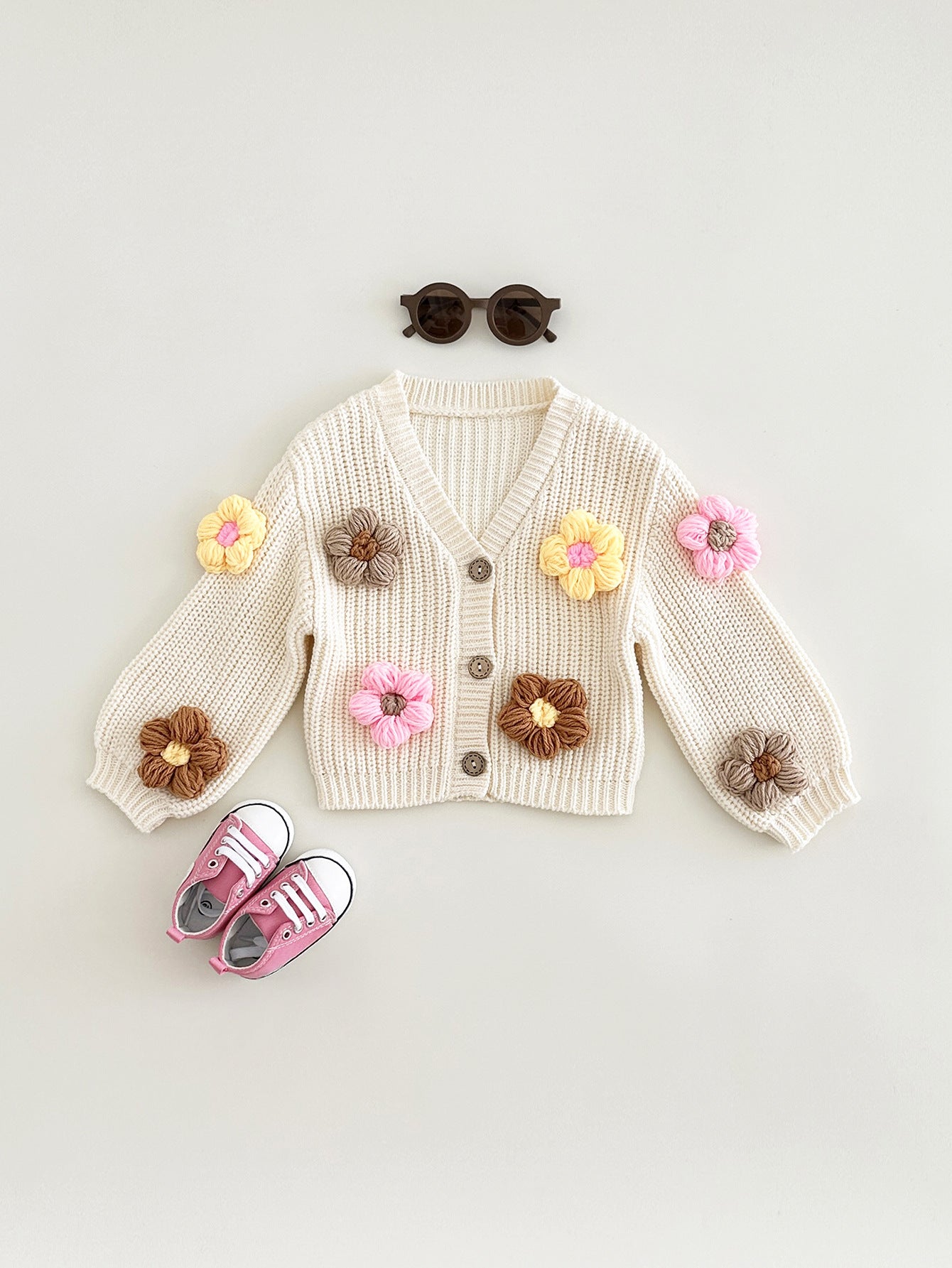 Abrigo de Punto con Flores para Niña