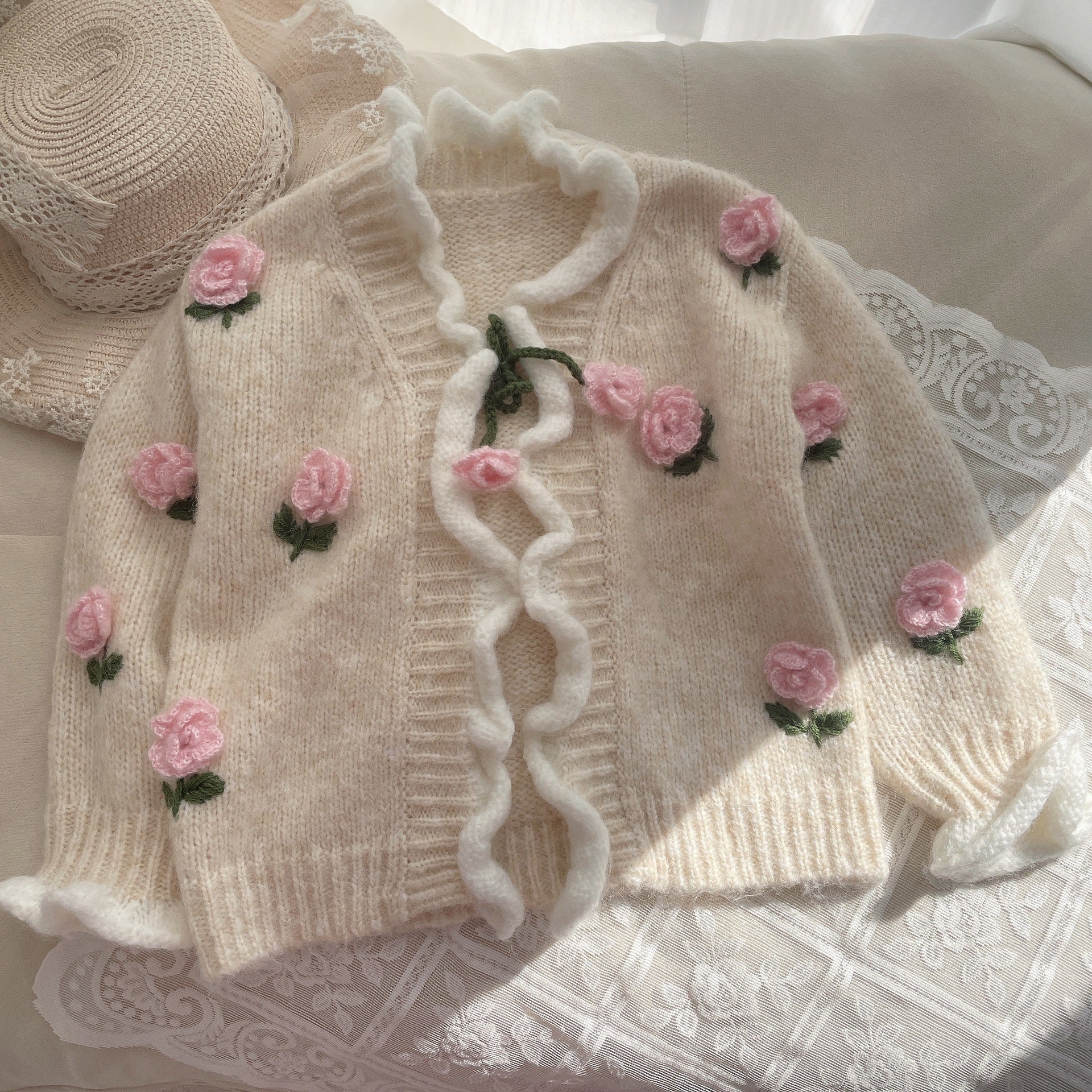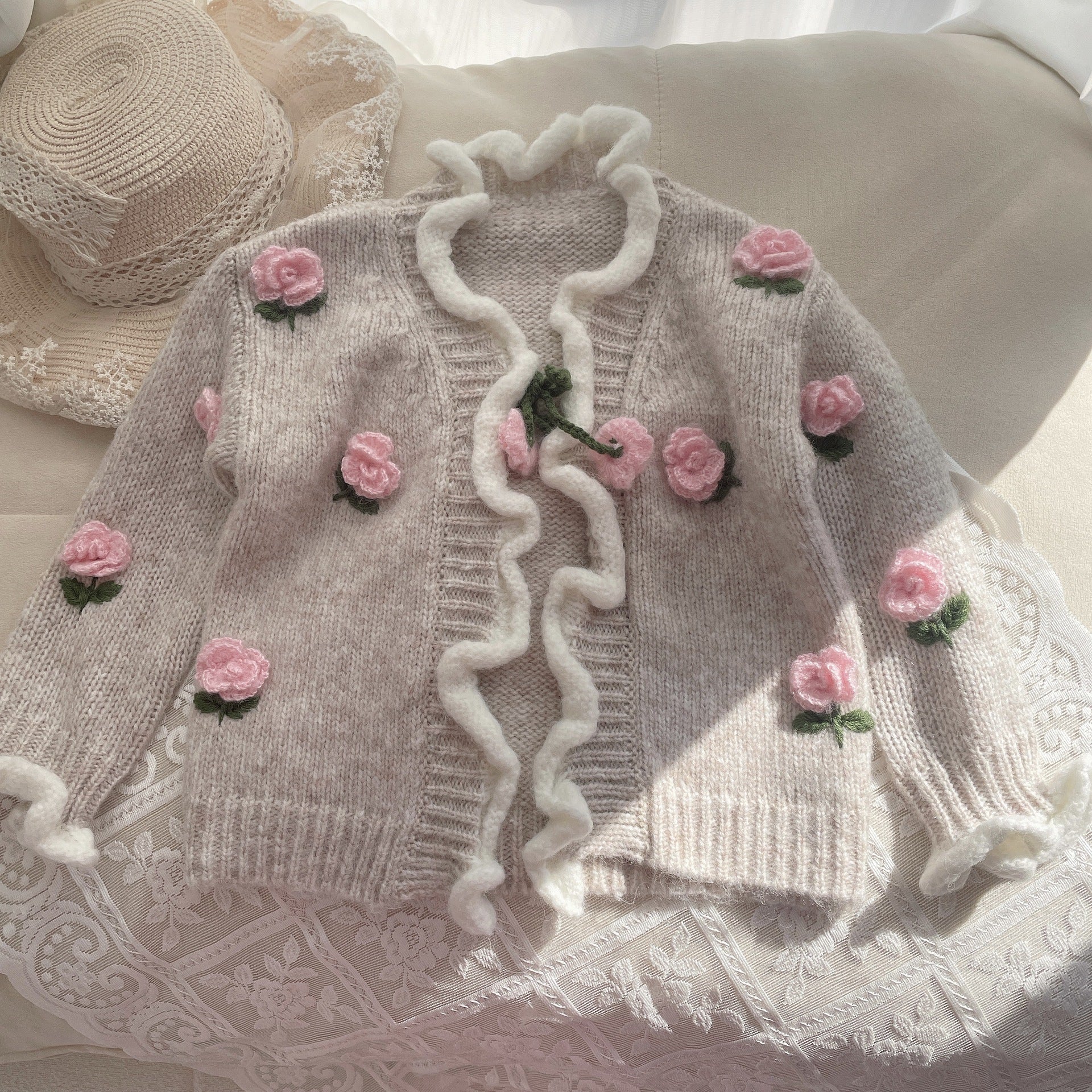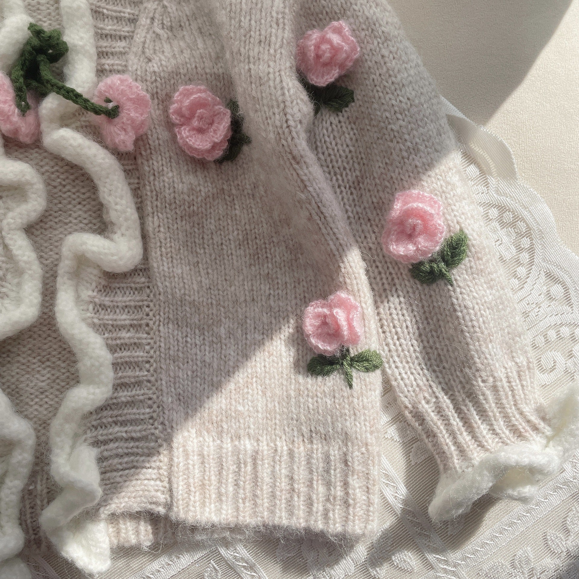 Cárdigan Infantil de Punto con Flores