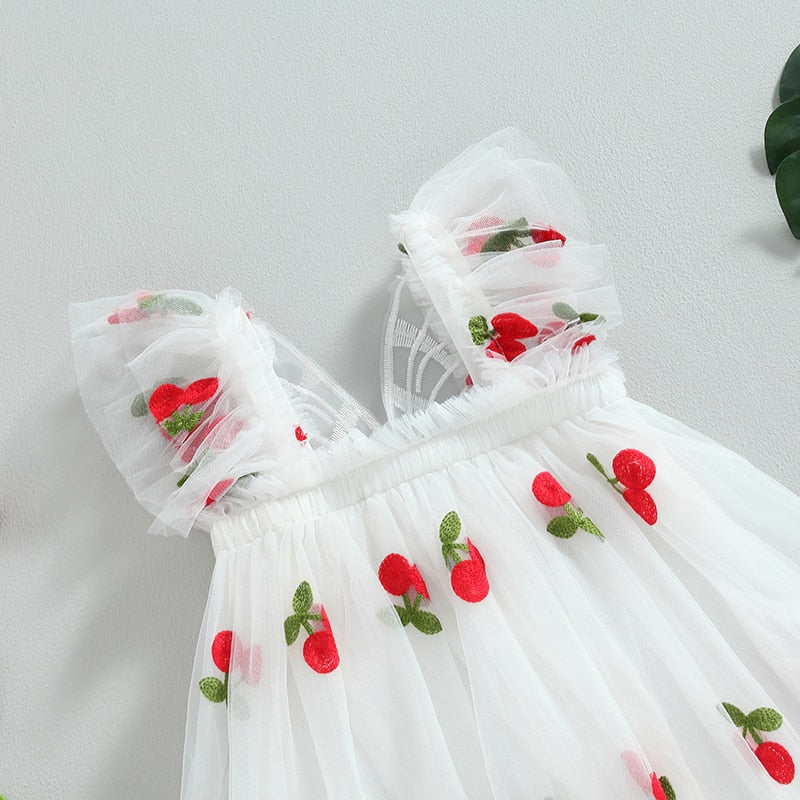 Vestido de tul con estampado de cerezas Vestido de mariposa para niños pequeños