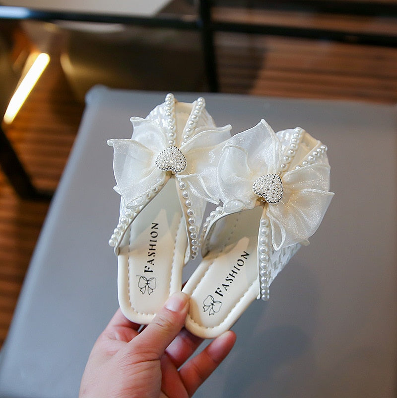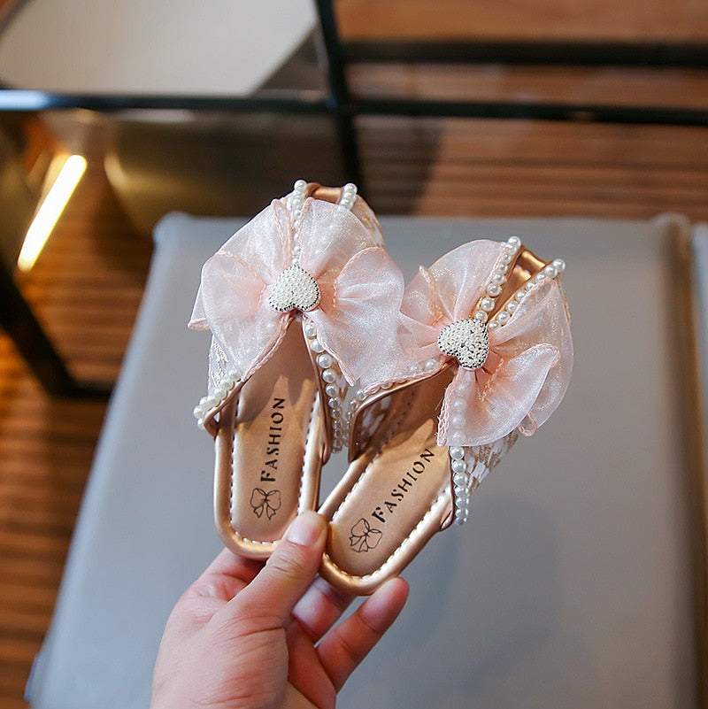 Pantuflas Infantiles Dulce Encaje Malla Perlas