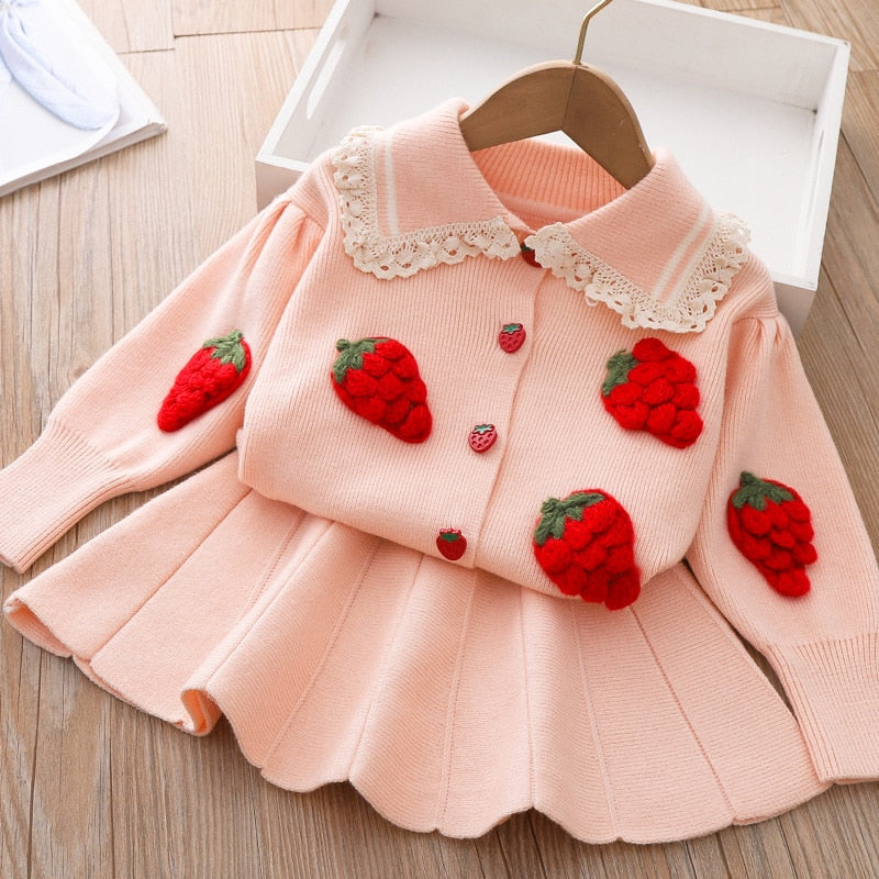 Ropa Cárdigan de punto fresa + falda plisada