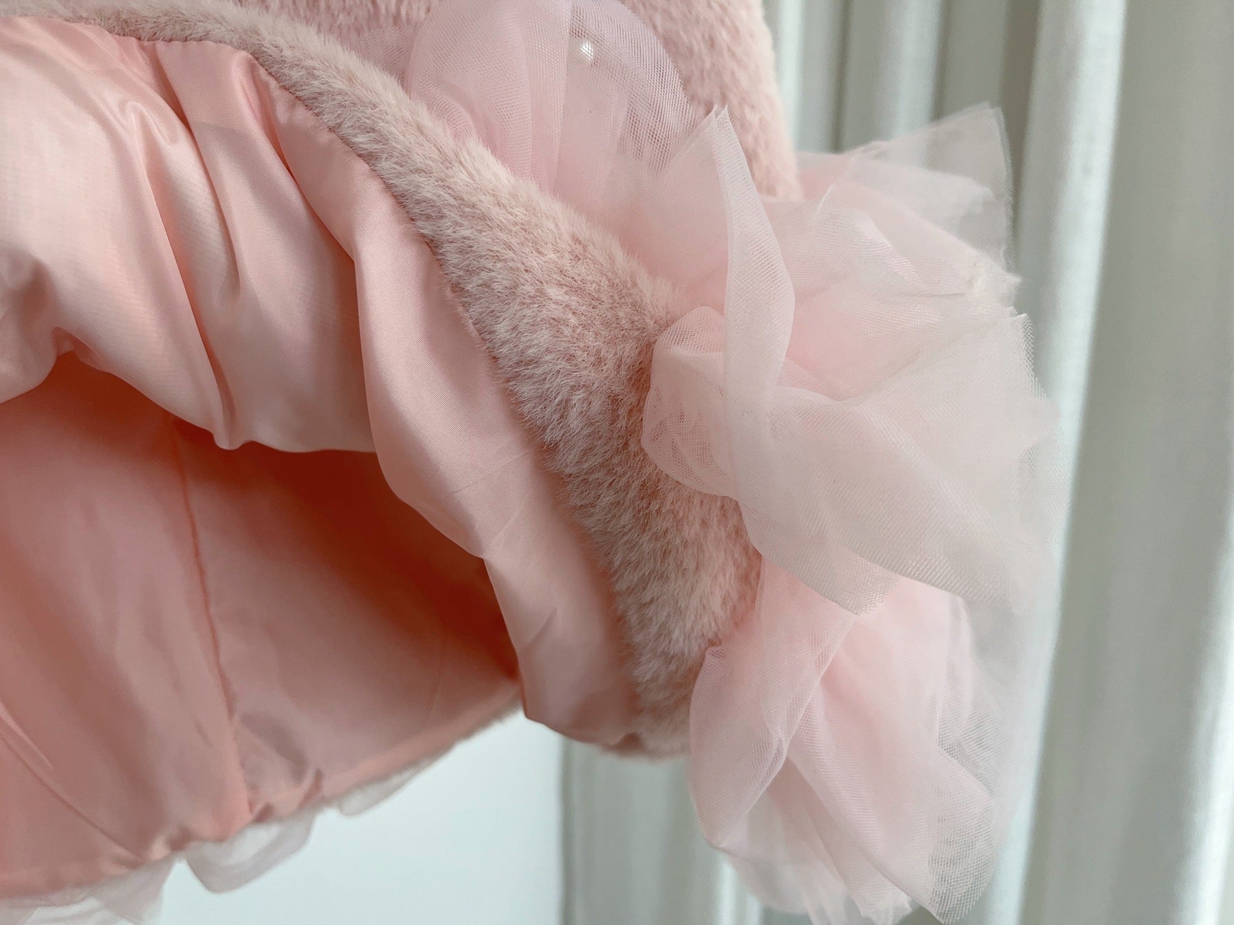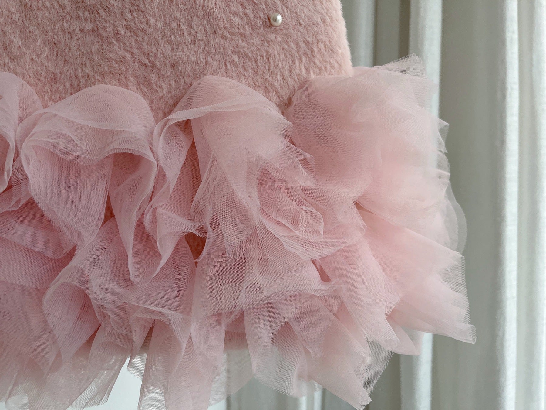 Conjunto de Abrigo y Perlas de Peluche para Niña + Vestido