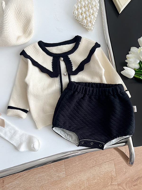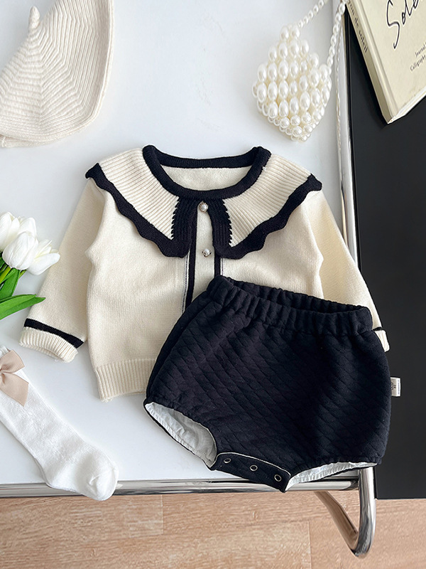 Conjunto de Niña en Blanco y Negro con Cuello
