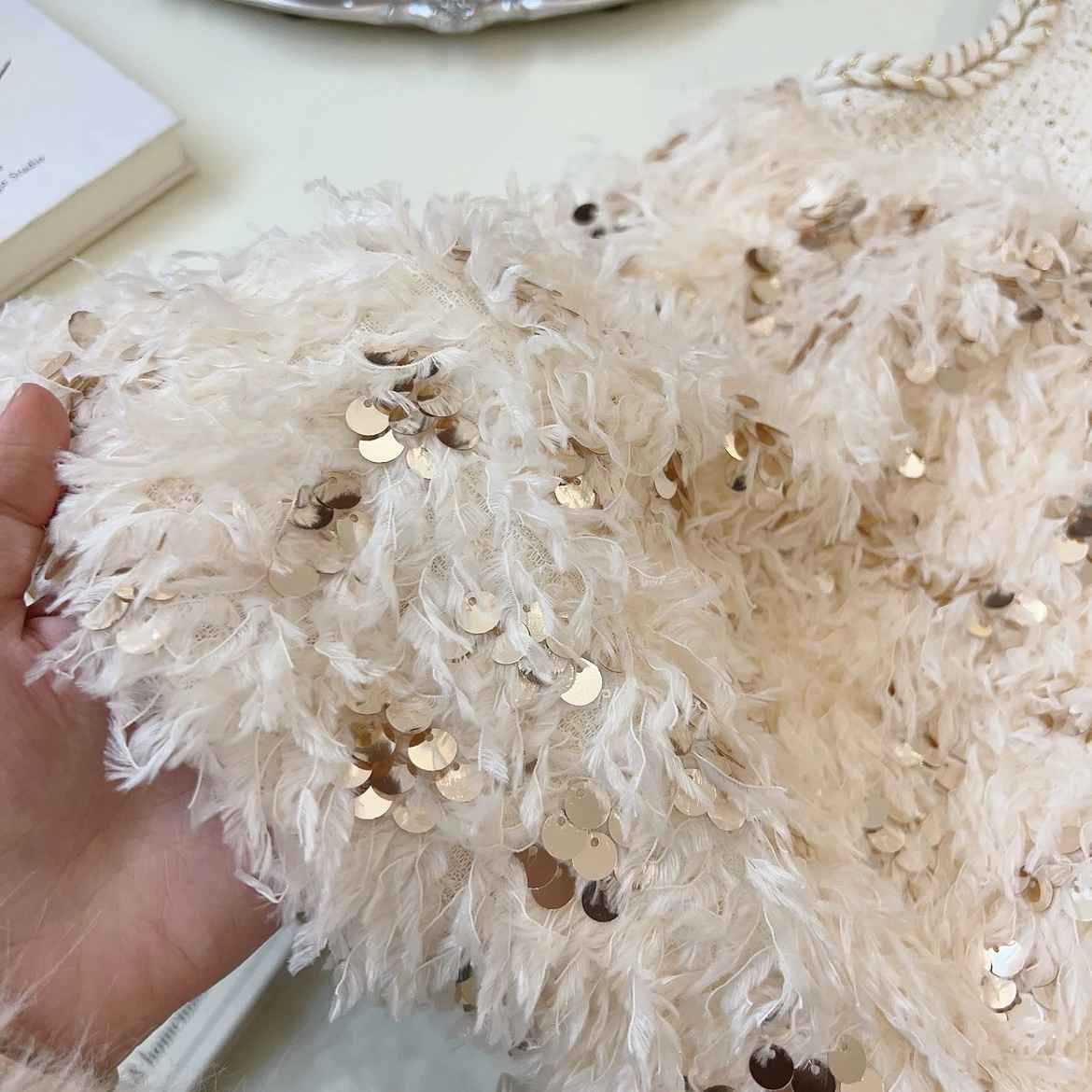 Conjunto de Vestido Infantil de Pelo Brillante
