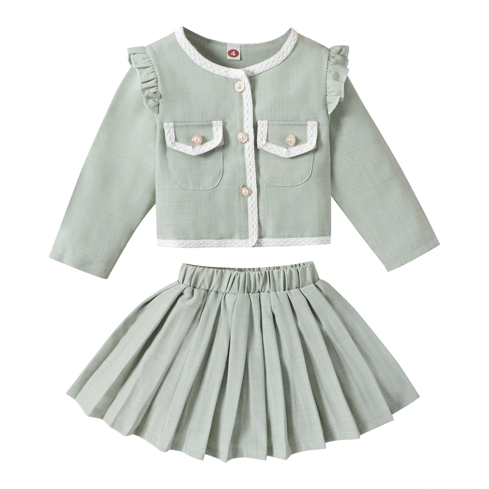 Conjunto infantil de mujer con bolsillos y falda plisada
