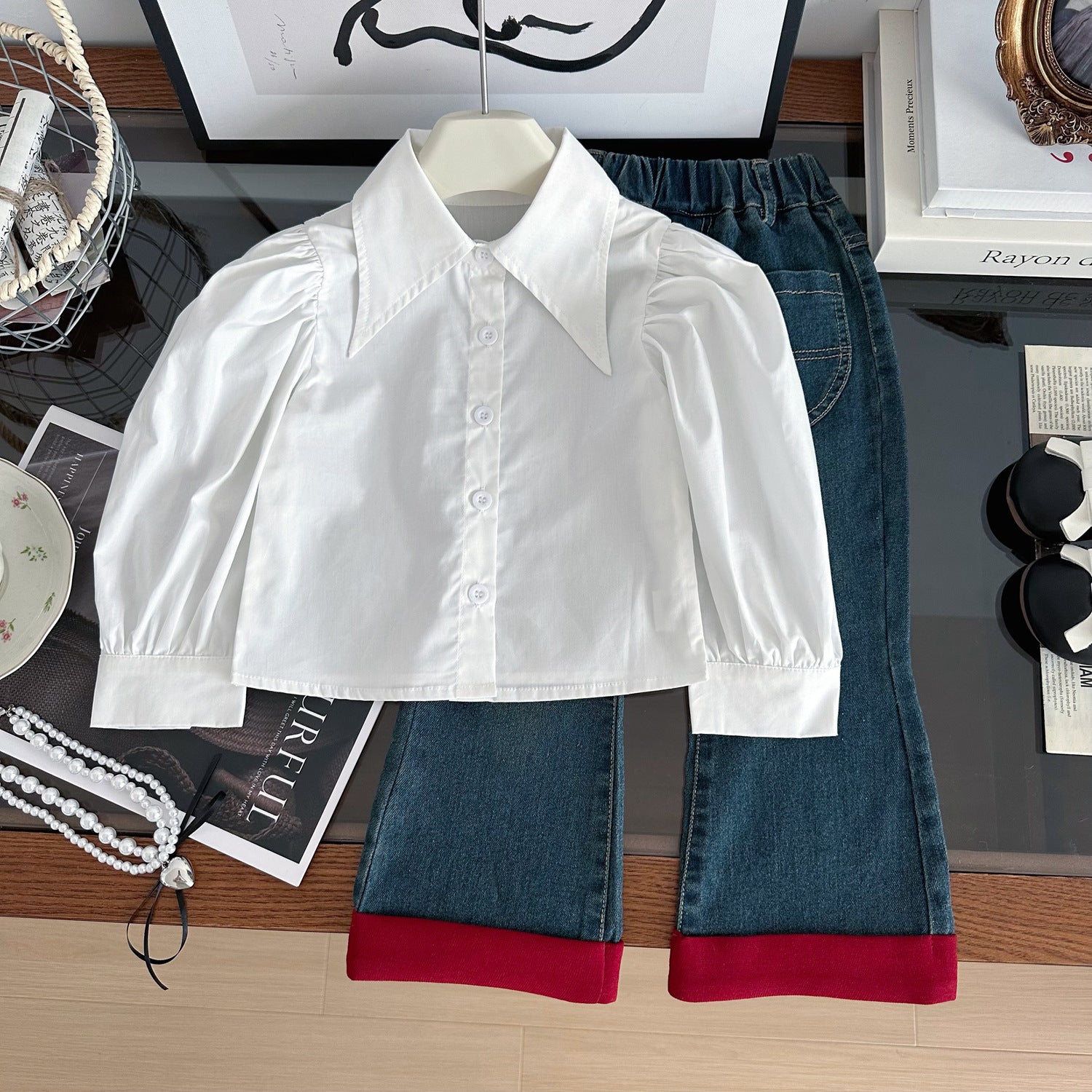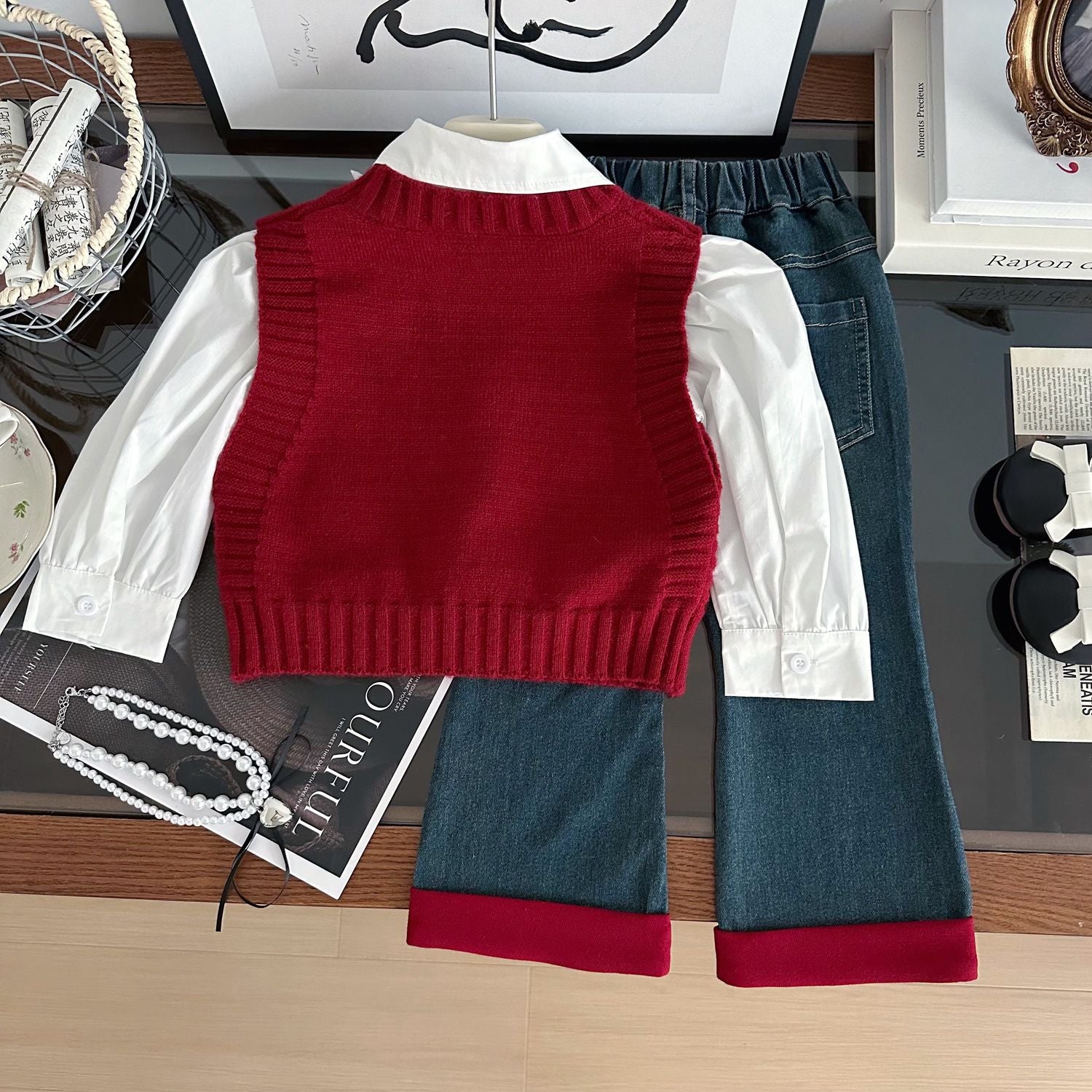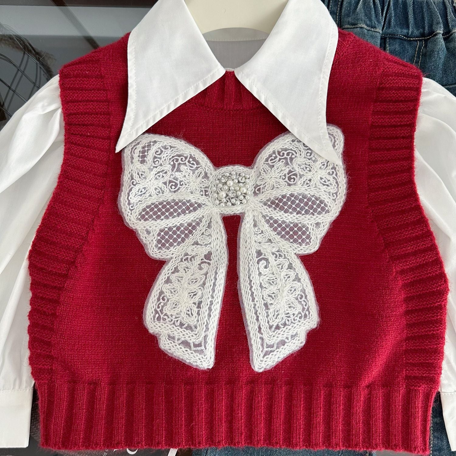 Conjunto Infantil Feminino de 3 Peças com Laços e Jeans