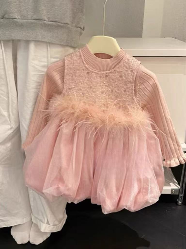 Conjunto Infantil Vestido Plumas + Blusa Perla