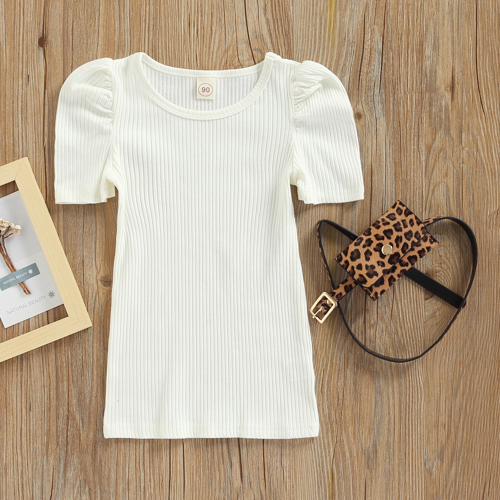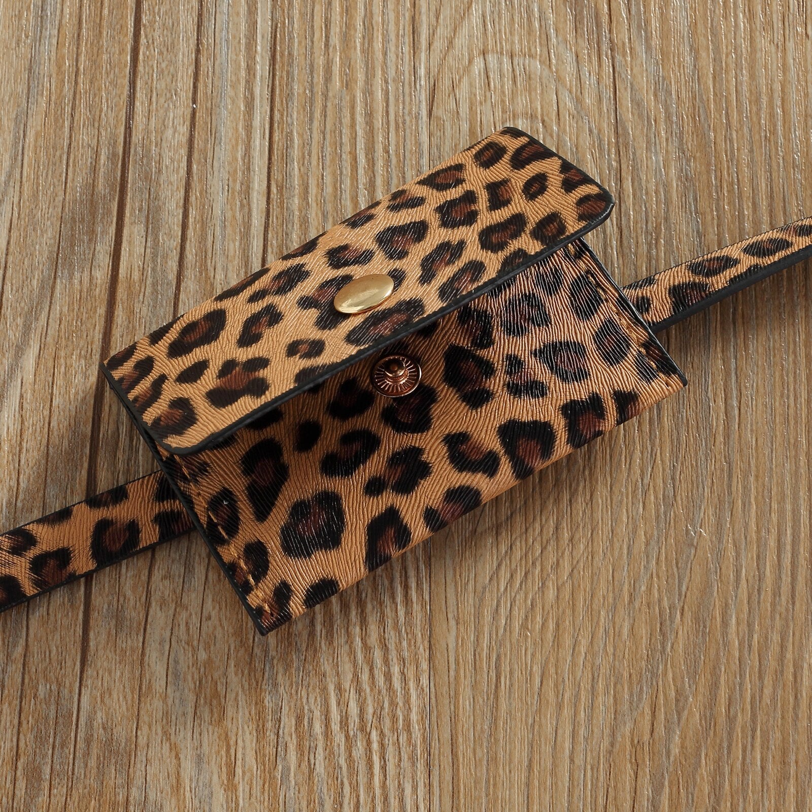 Vestidos con riñonera Vestido liso de manga corta con cuello redondo Riñonera con estampado de leopardo