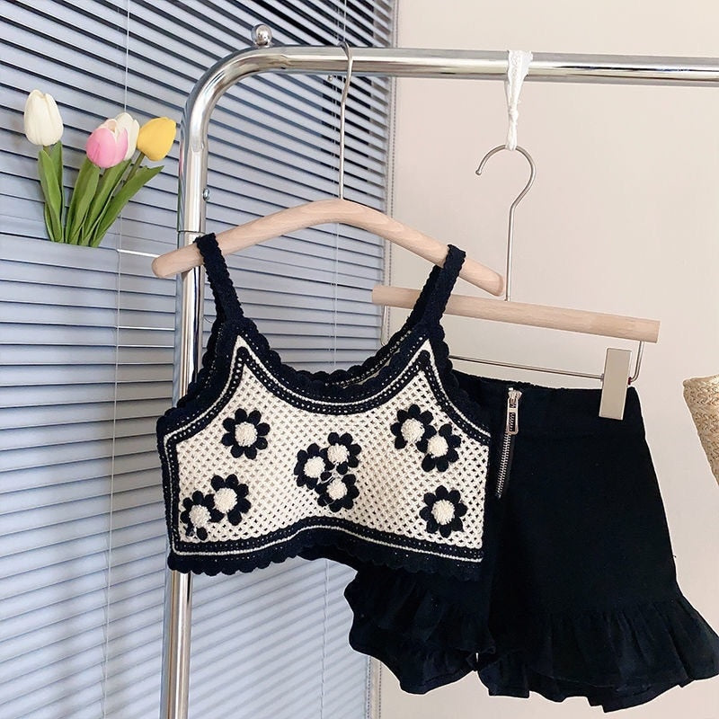 Conjunto de ropa de moda Correa Flor Chaleco + Pantalones cortos 2PCS
