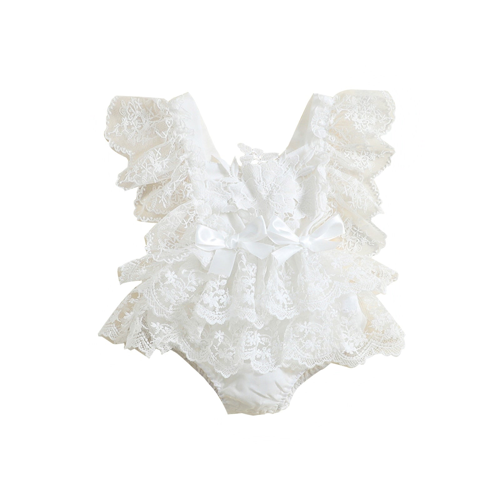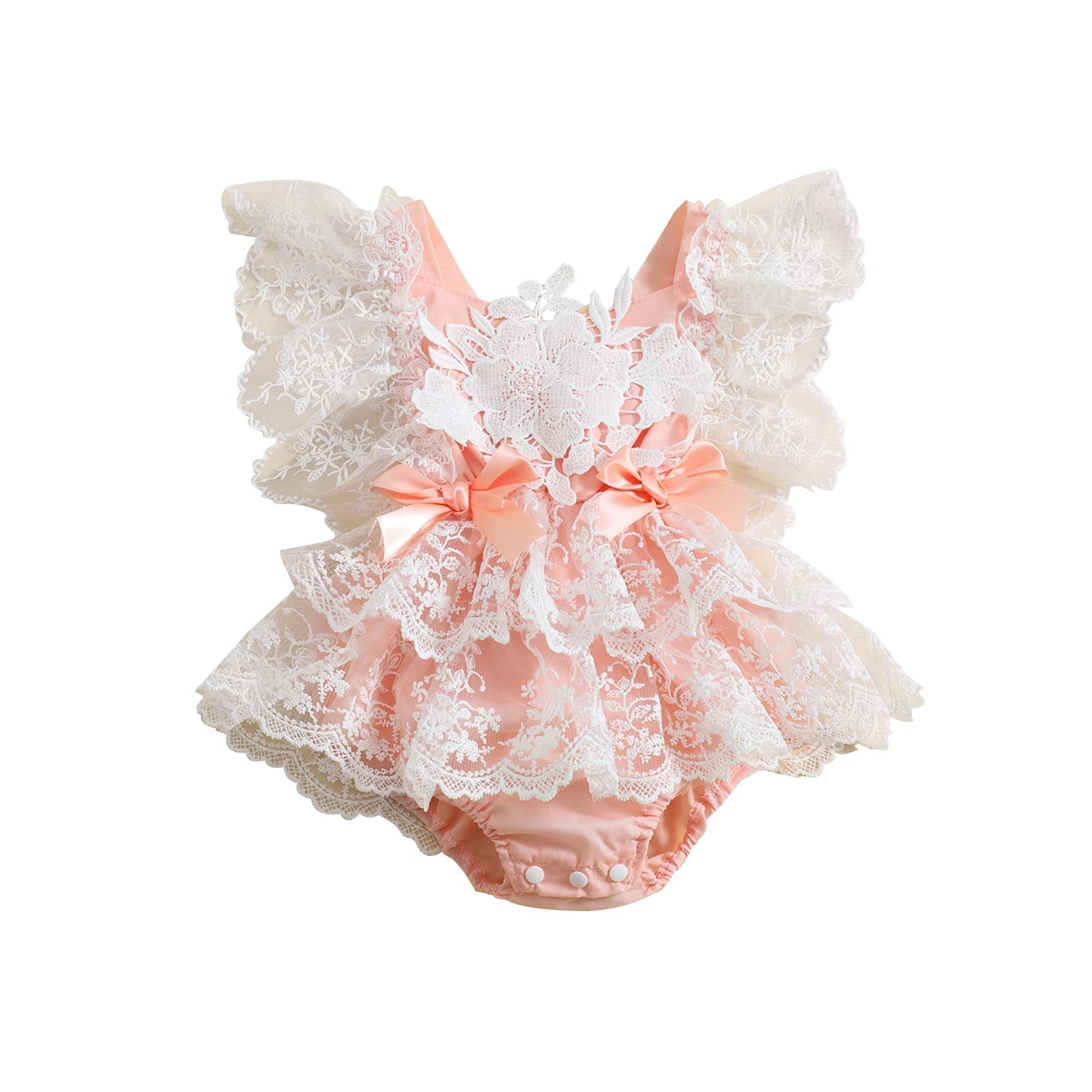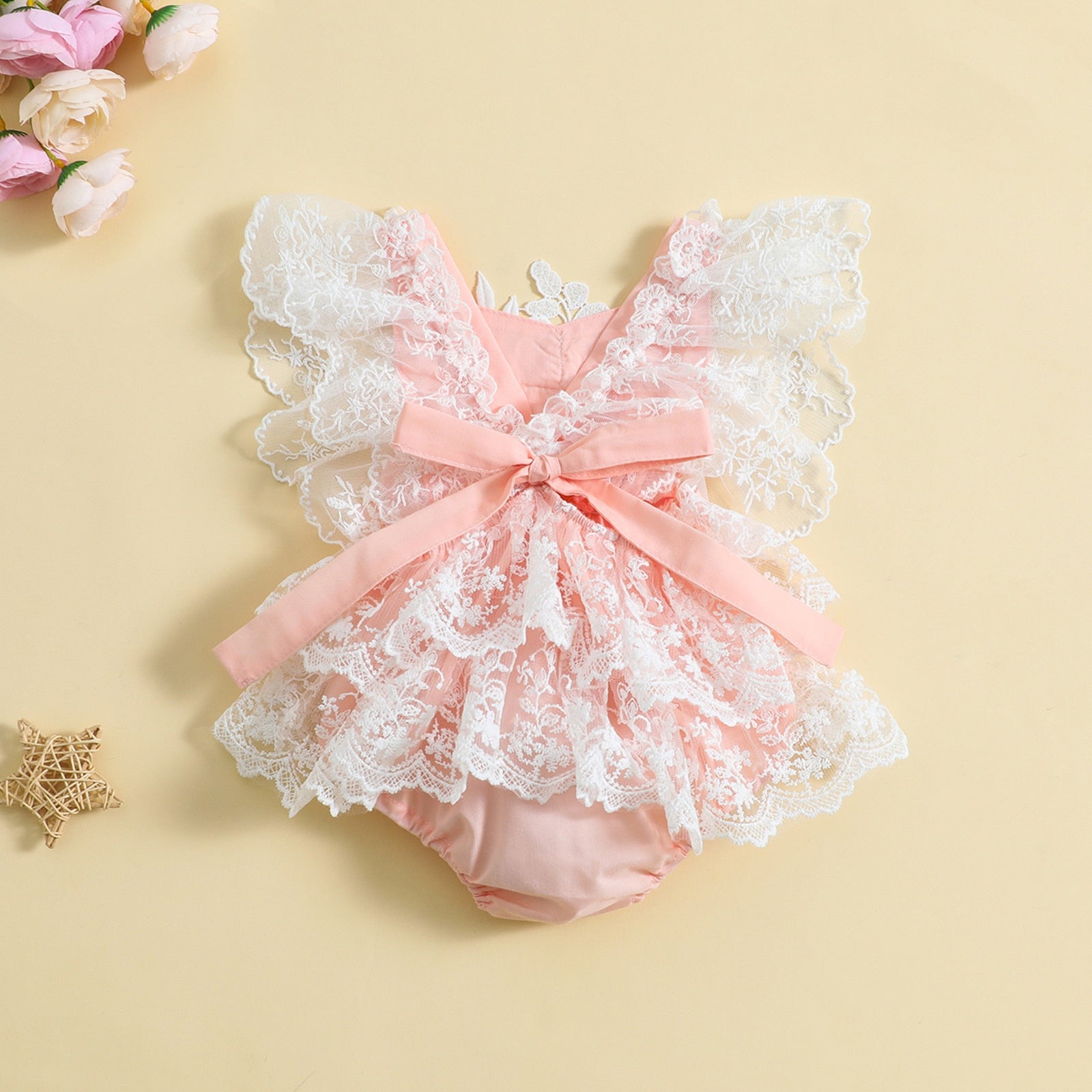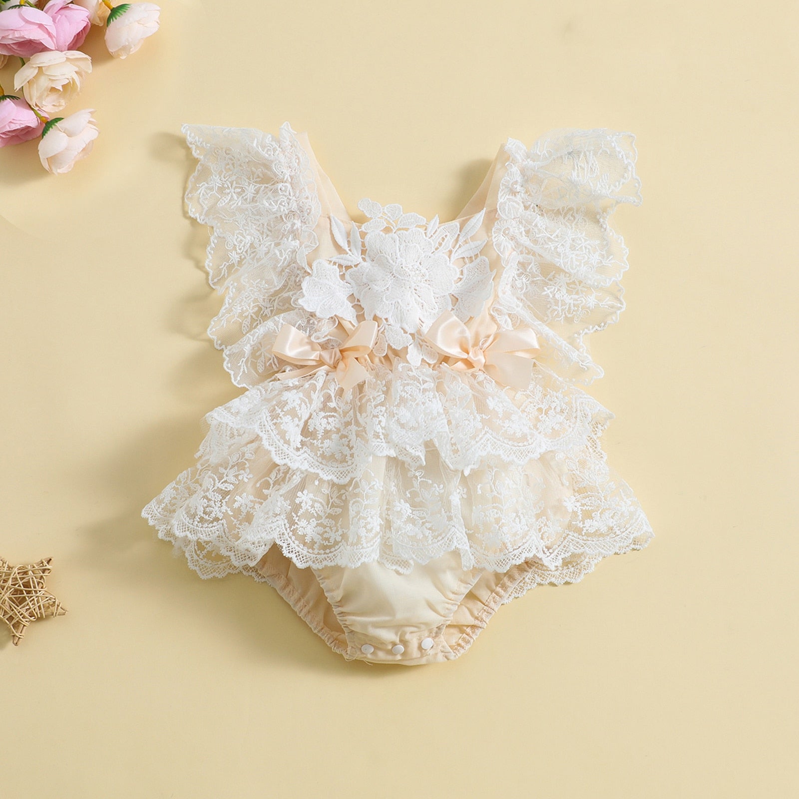 Bebé Niñas Floral Encaje Mameluco Vestido Verano Casual Volar Mangas Tirantes Mono Para Niño Recién Nacido