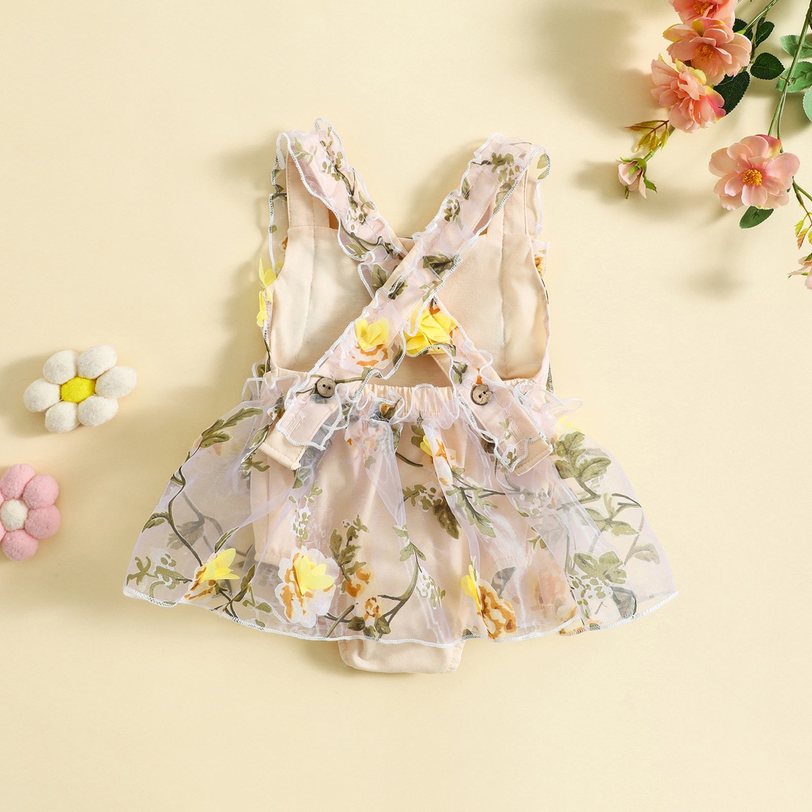 Mameluco de vestido de una línea de verano con retazos de tul y flores