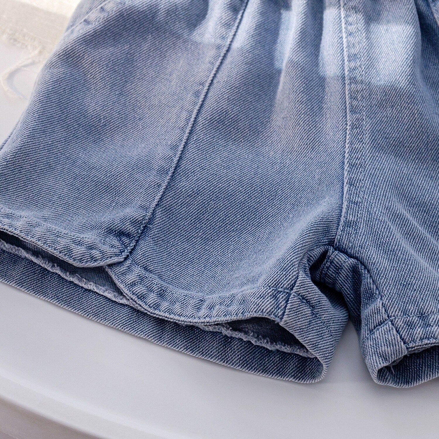 Conjunto Infantil Camiseta Manga Abullonada + Short Jeans