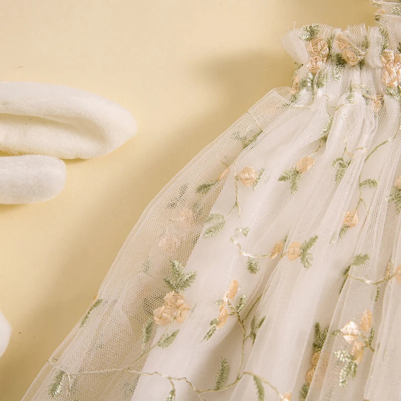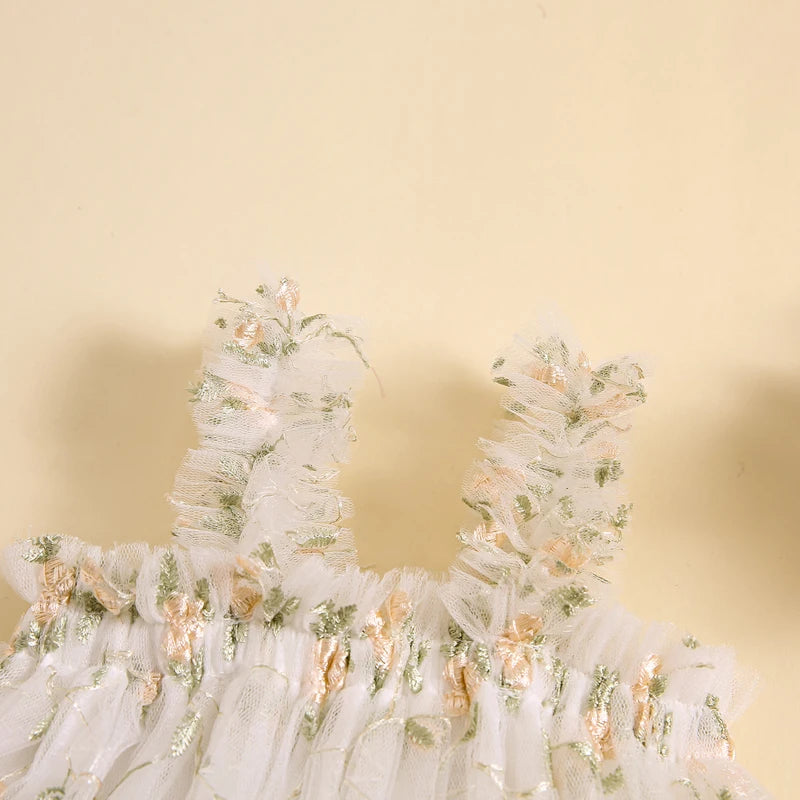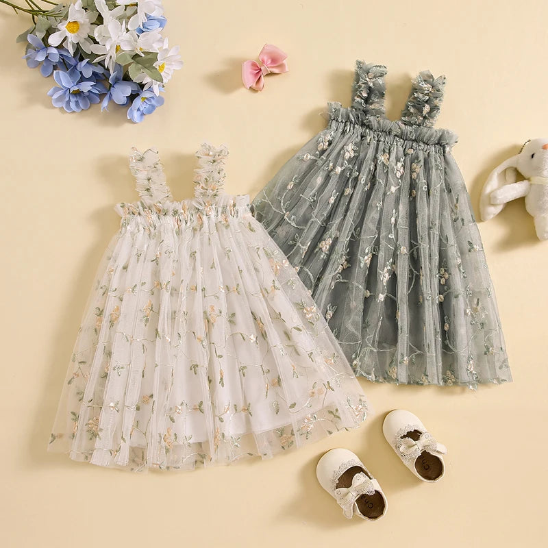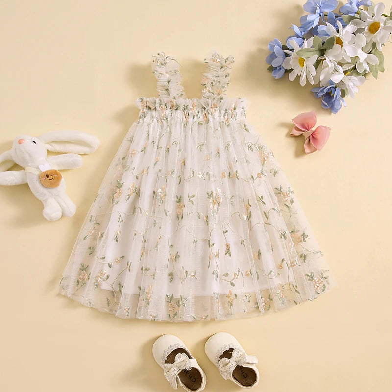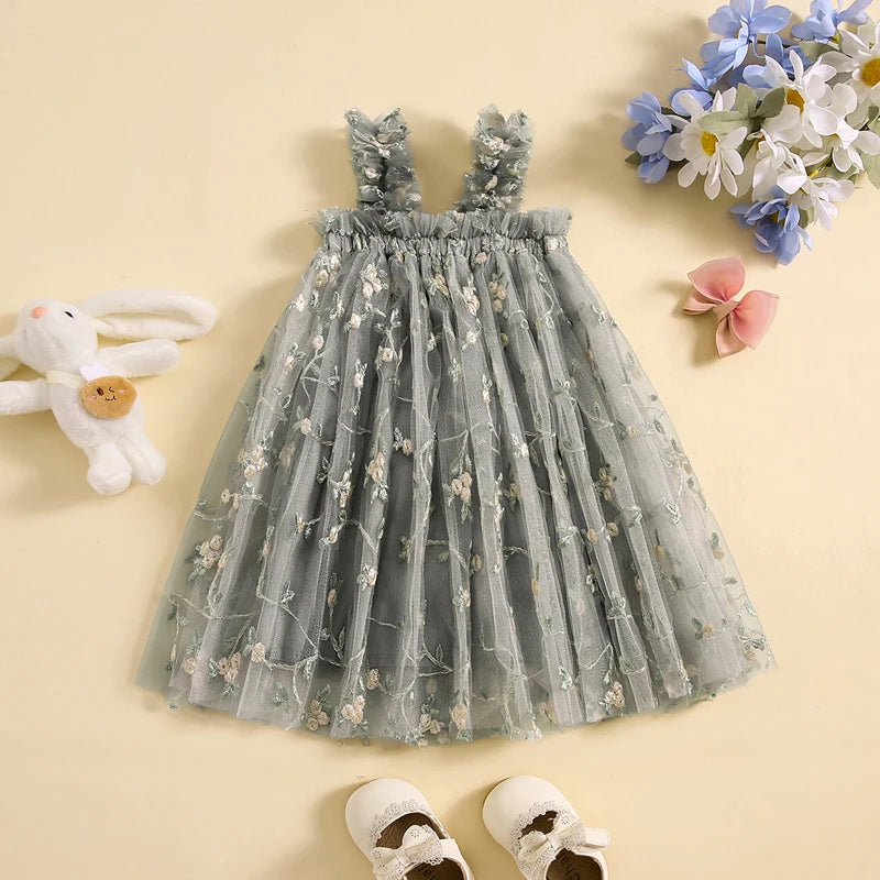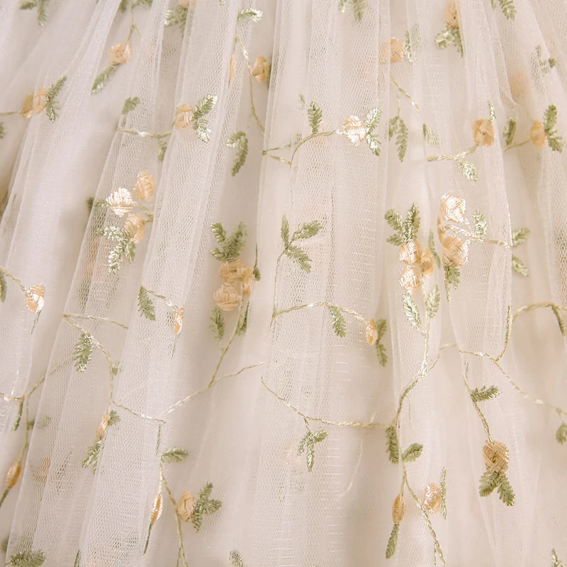 Vestido Infantil de Tul con Flores Bordadas