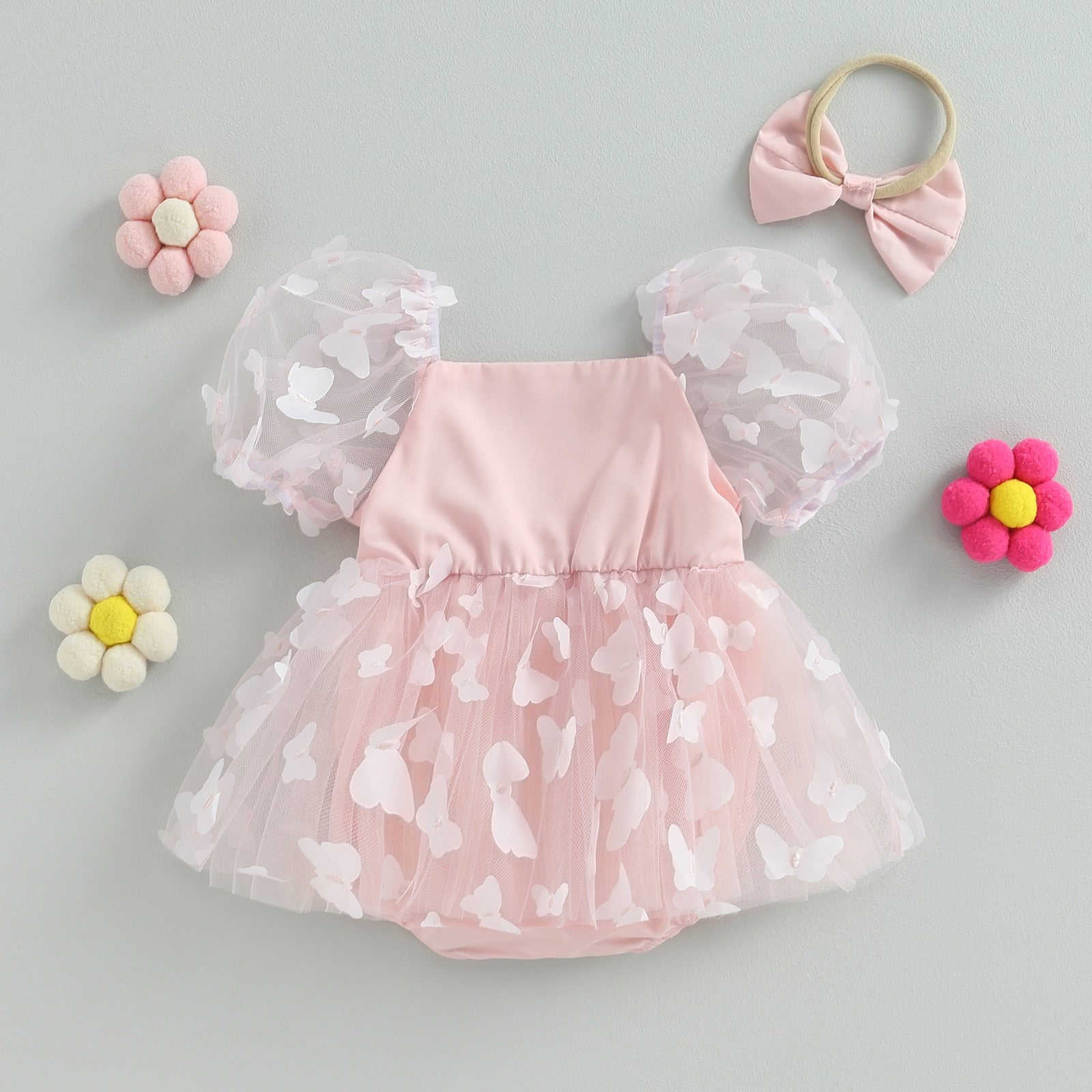 Vestido de mariposa mameluco con diadema con lazo conjunto de ropa de verano