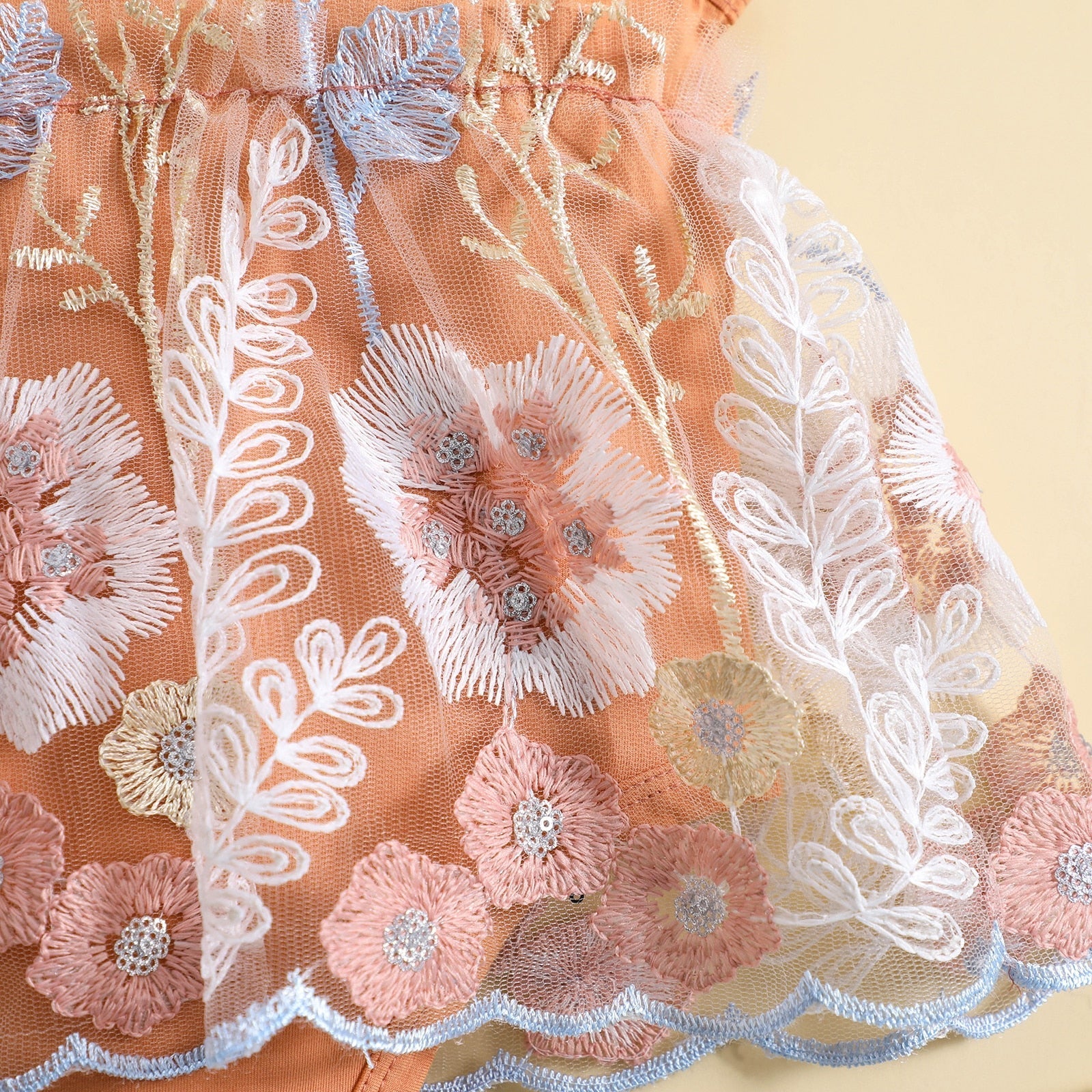 Patrón: bordado de flores, mosaico de malla.