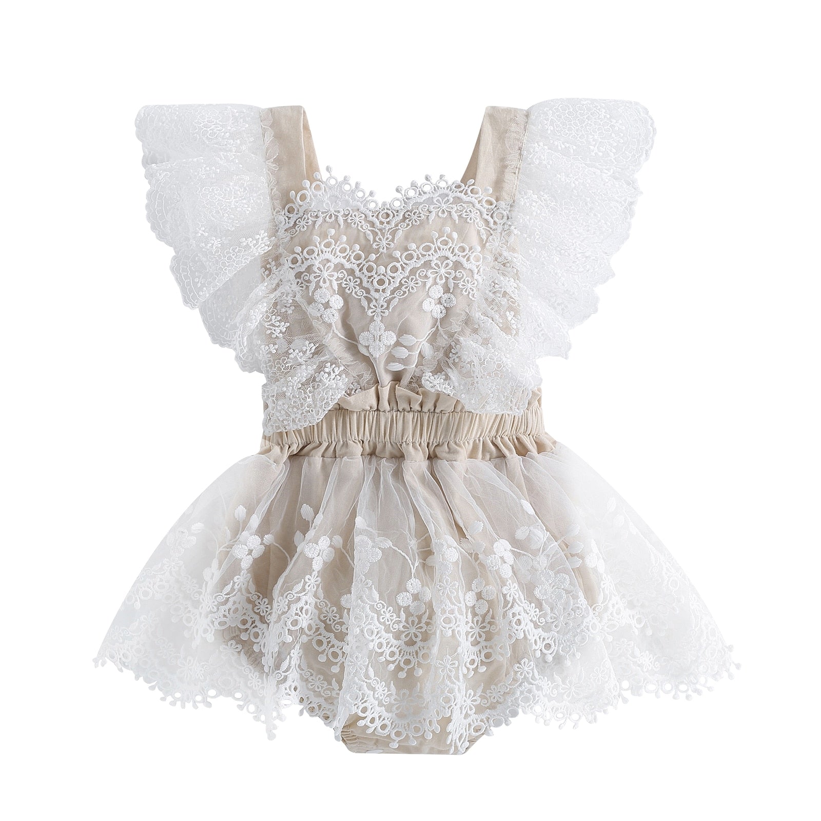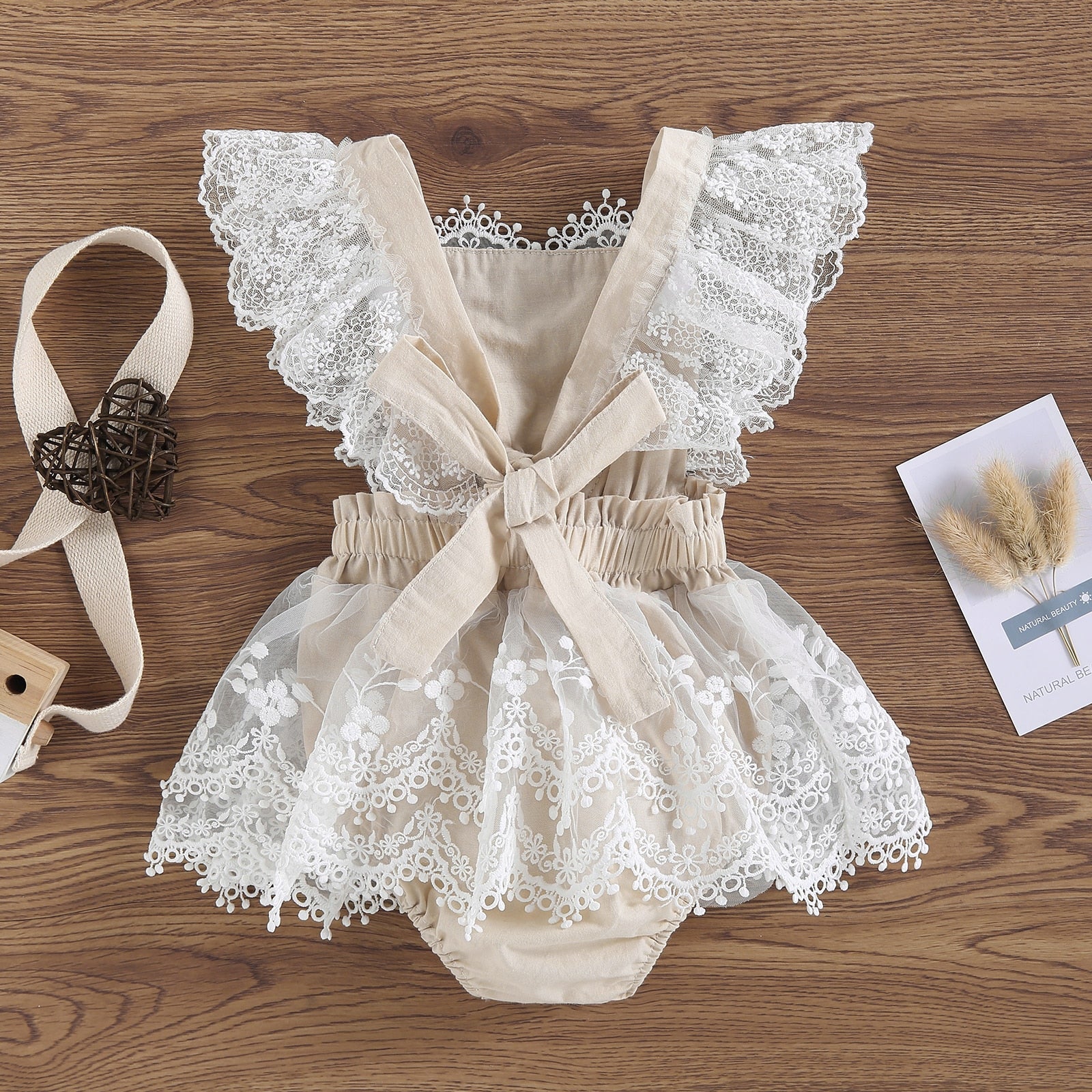 Mameluco, Manga Volante Cuello Cuadrado Volantes Encaje Verano