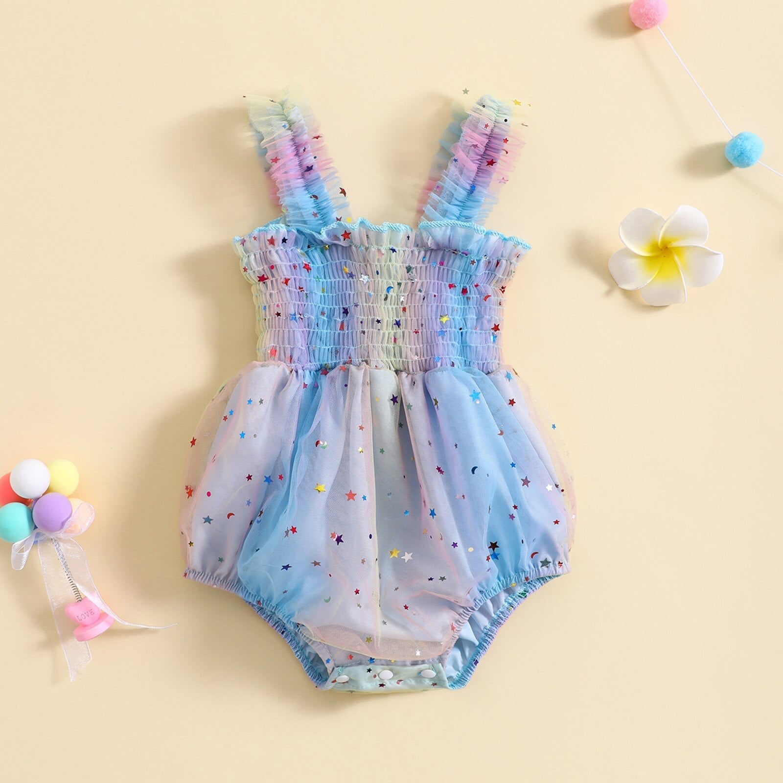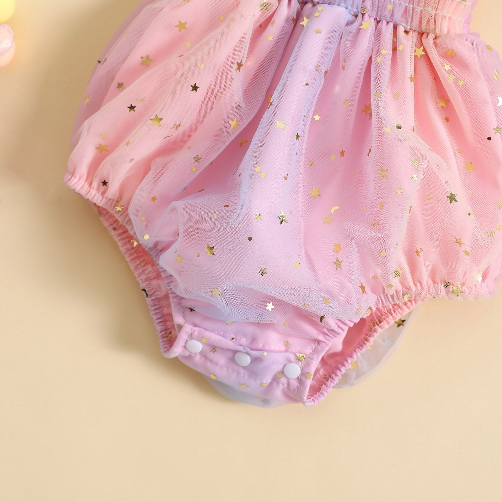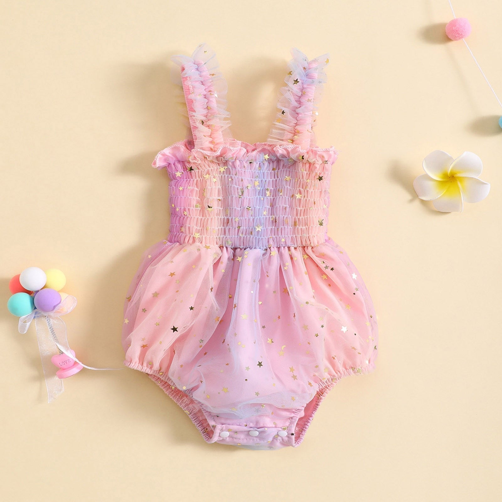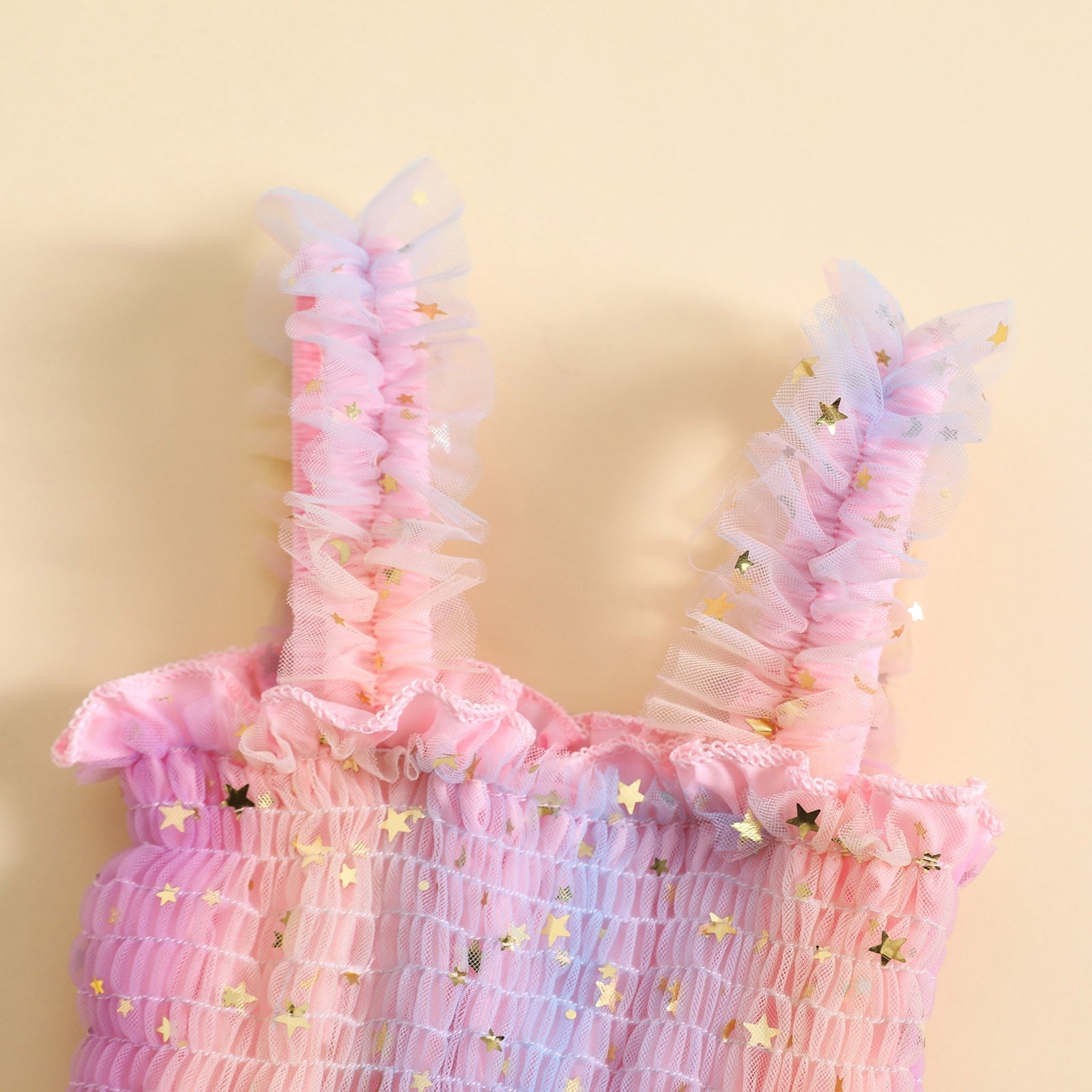 Pelele con estampado de estrellas Mono corto fruncido Princesa de tul colorido