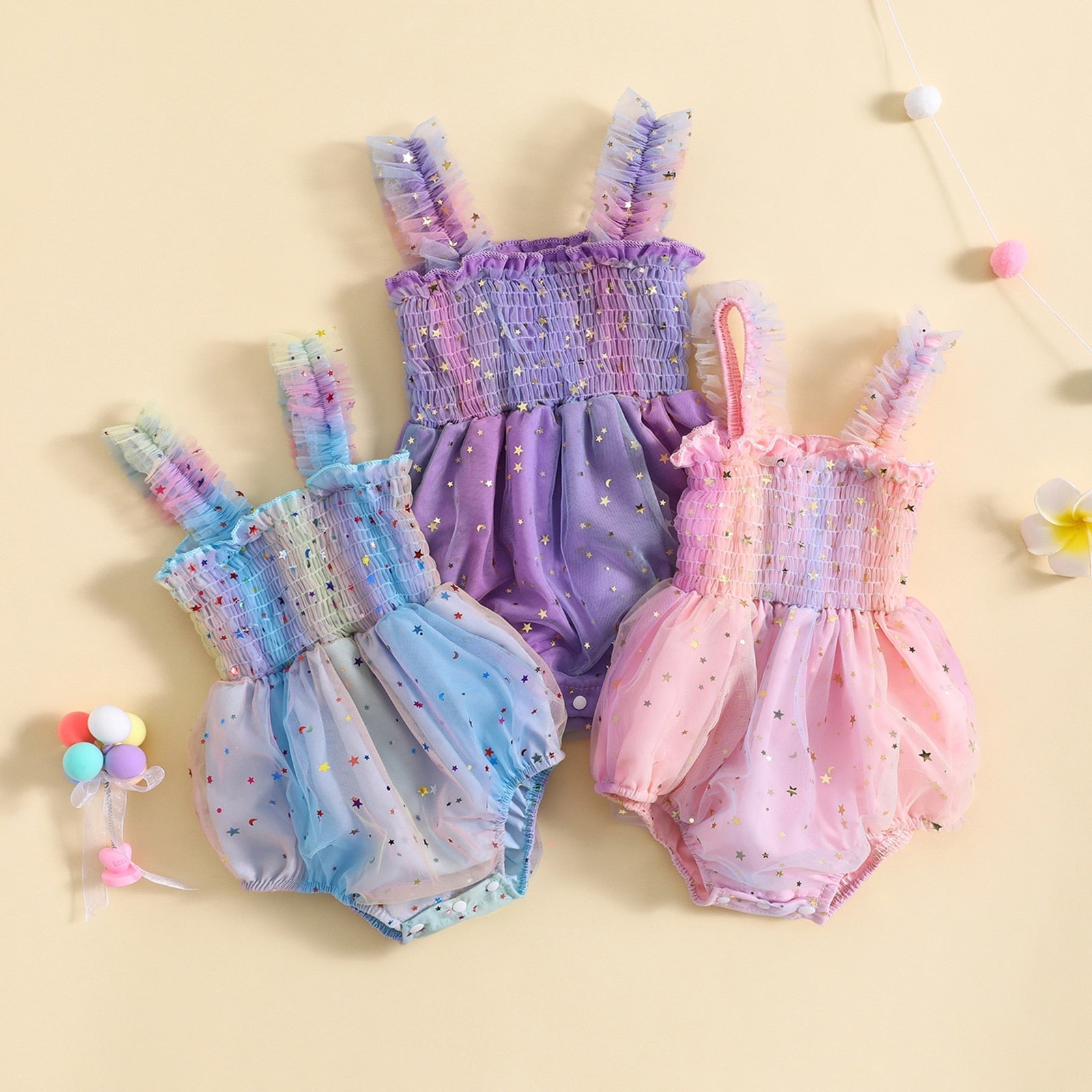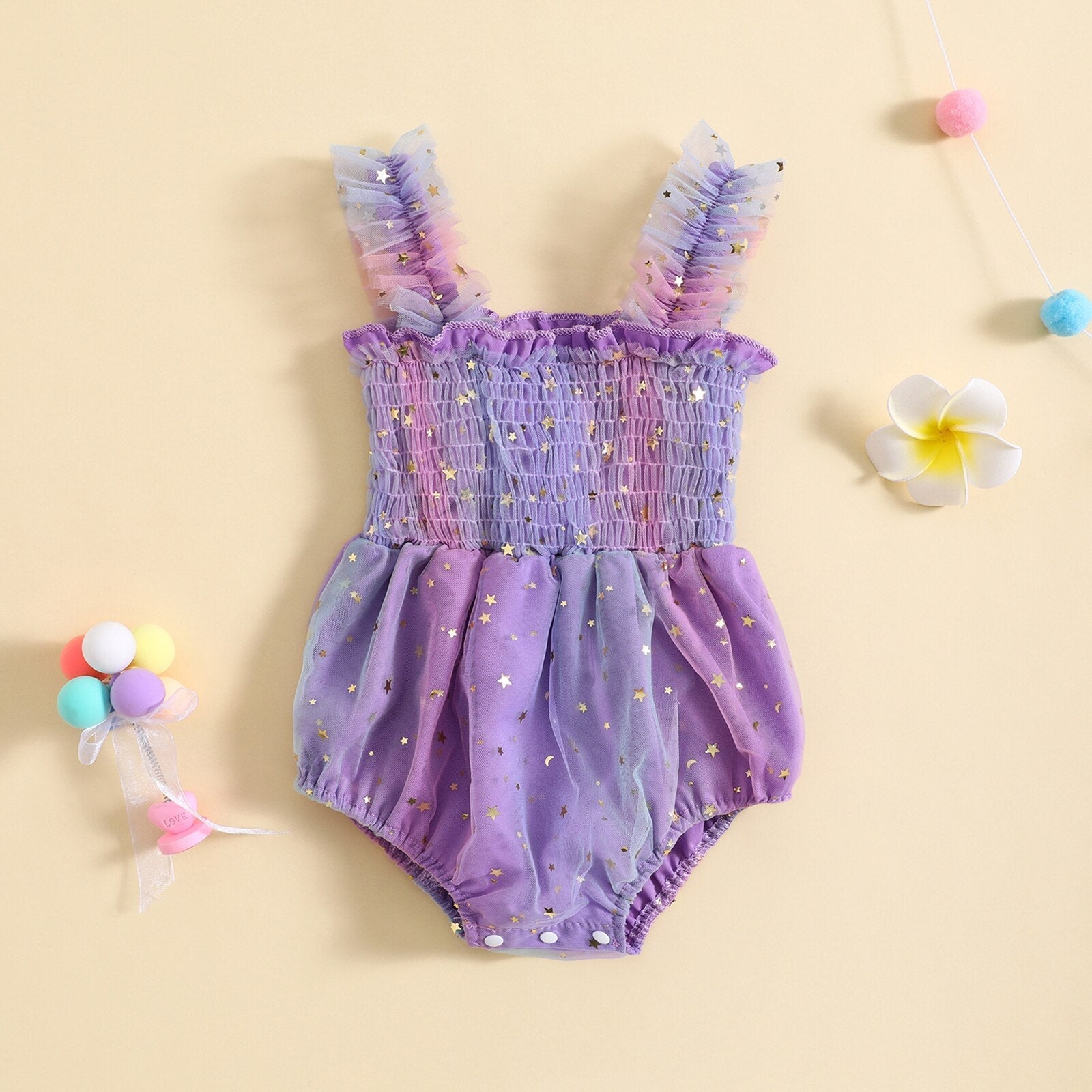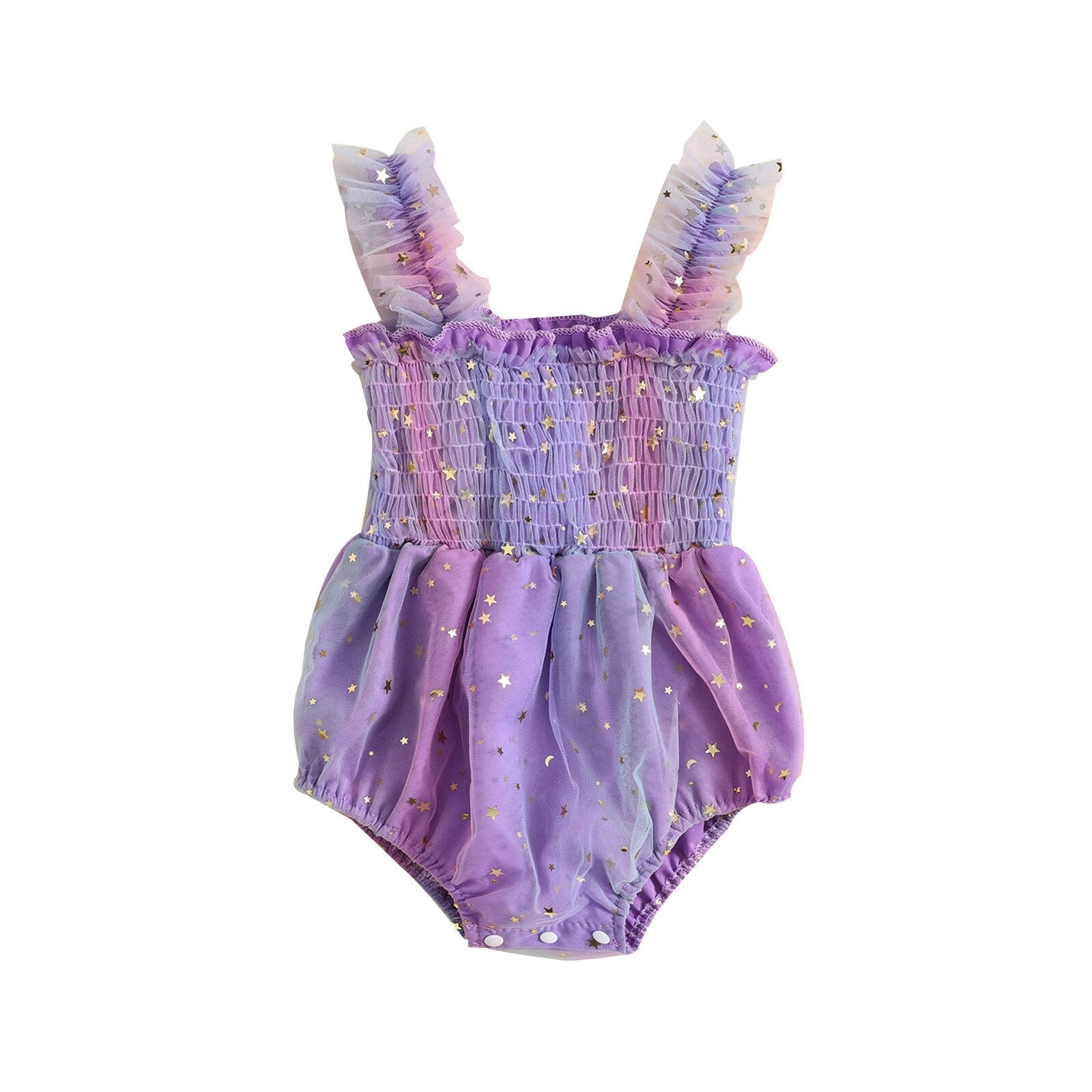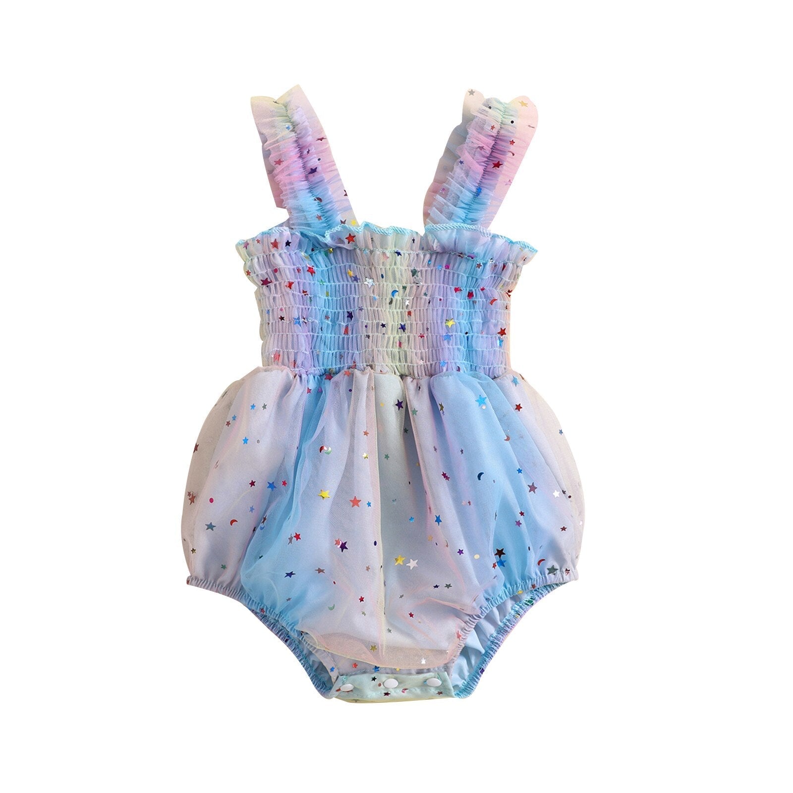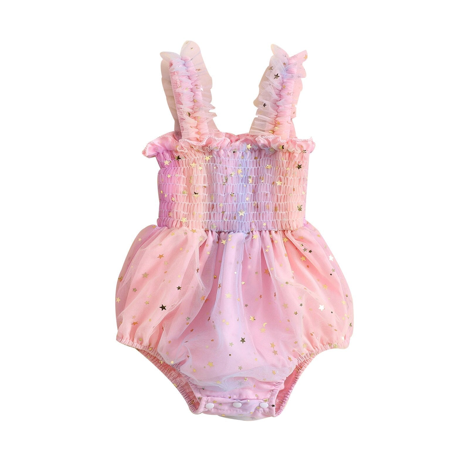 Pelele con estampado de estrellas Mono corto fruncido Princesa de tul colorido