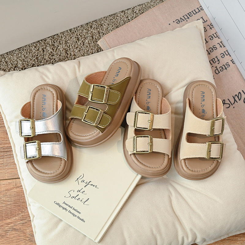 ✅Modelo: Sandalia infantil con doble cinturón para mujer.