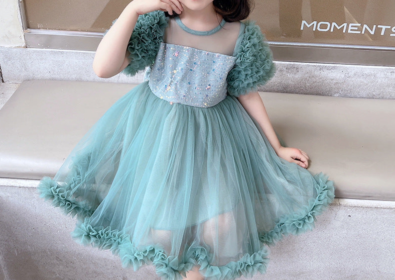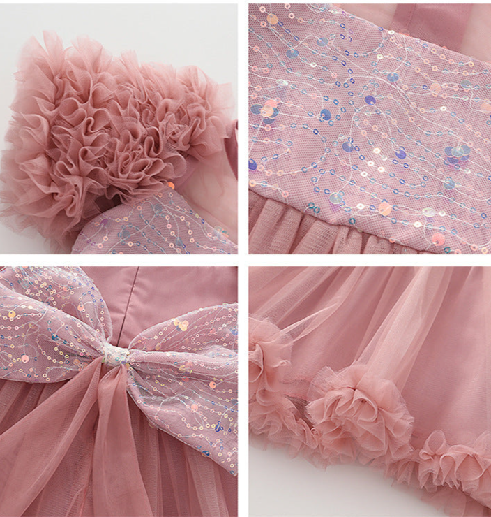 Vestido de Fiesta Abullonado Brillante Con Lazo