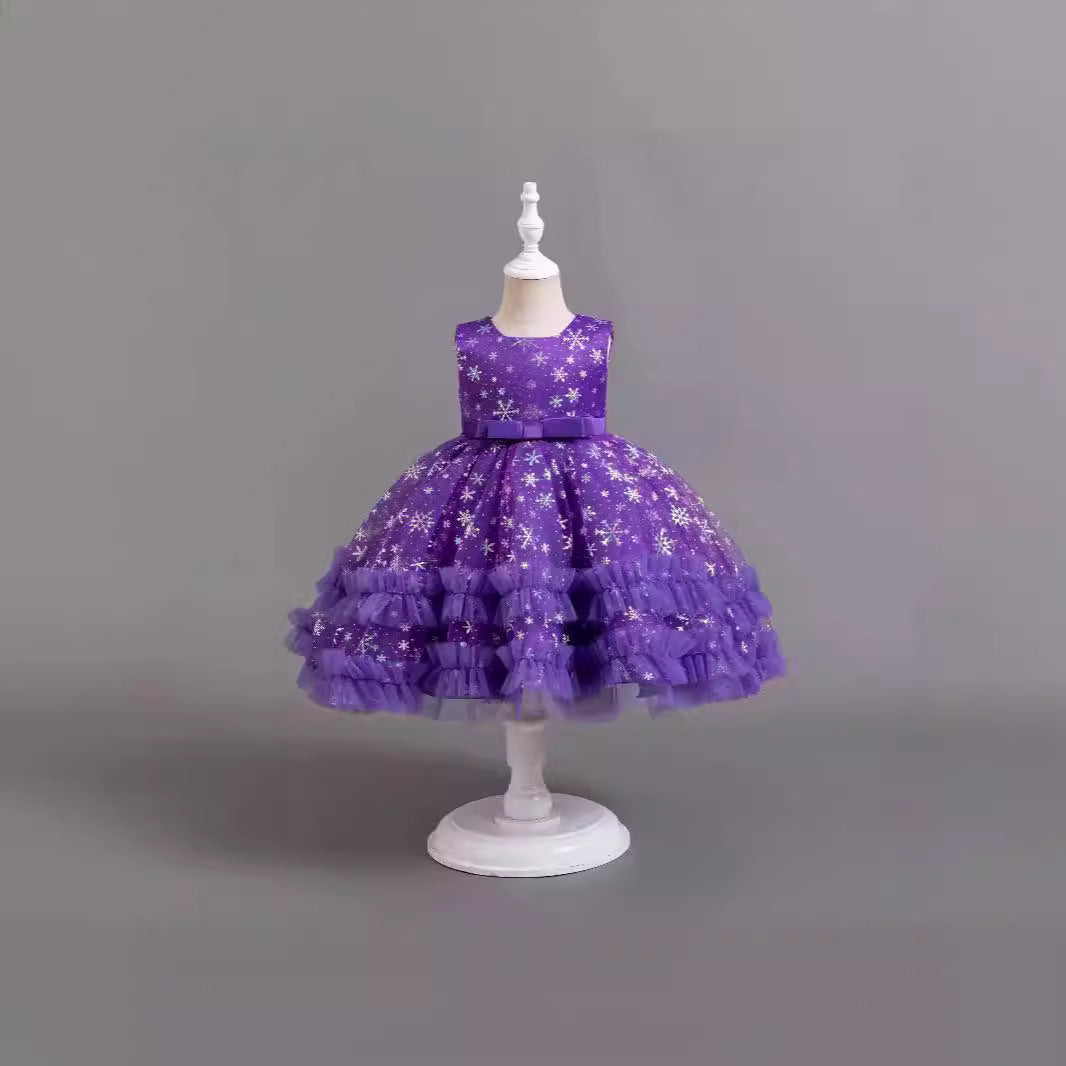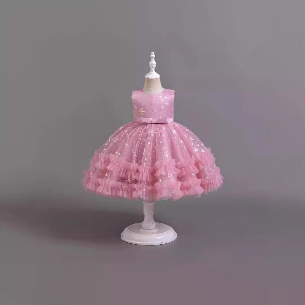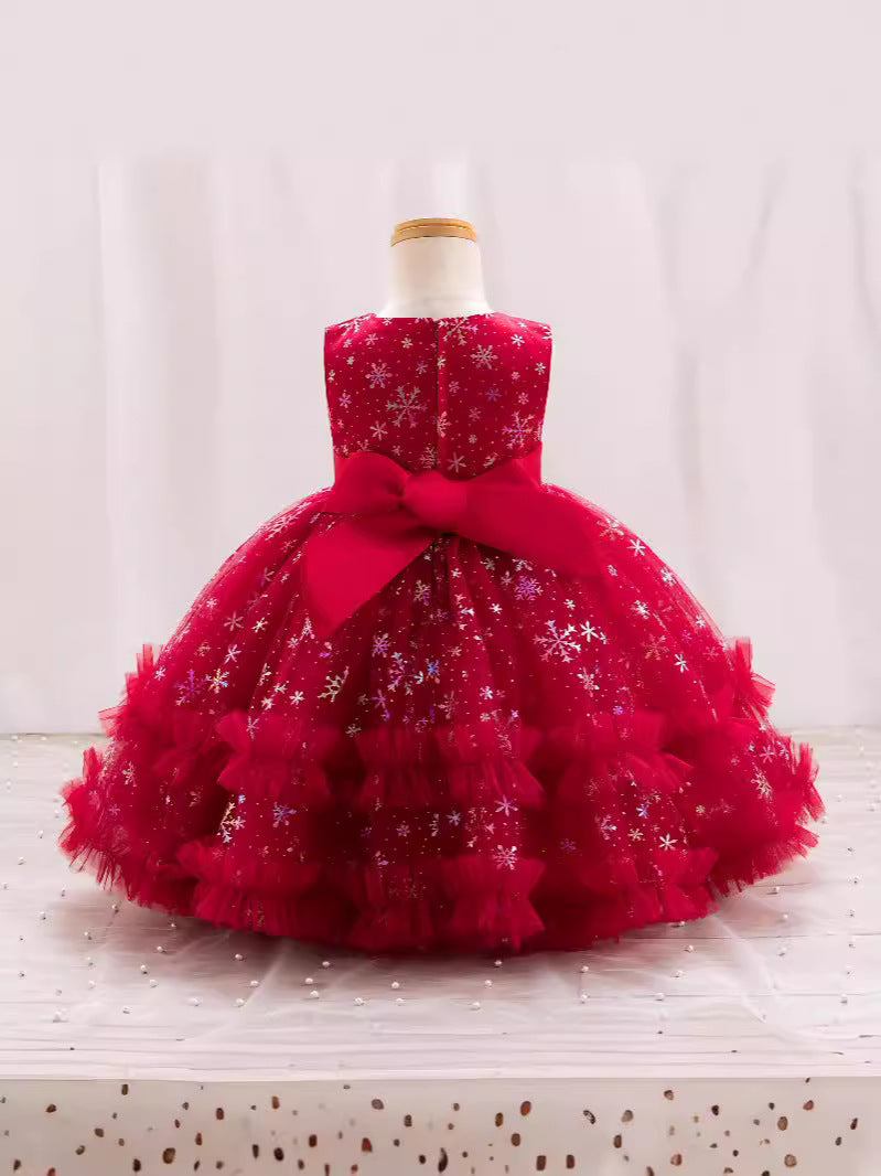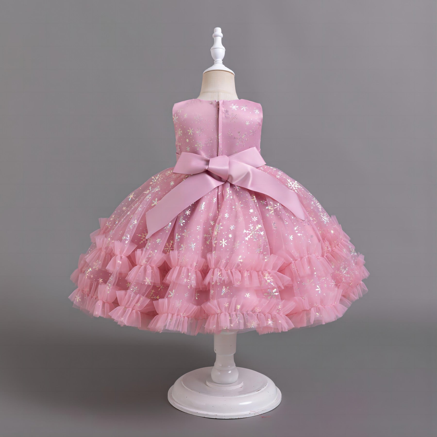 Vestido de fiesta de Navidad para niñas con lazo brillante