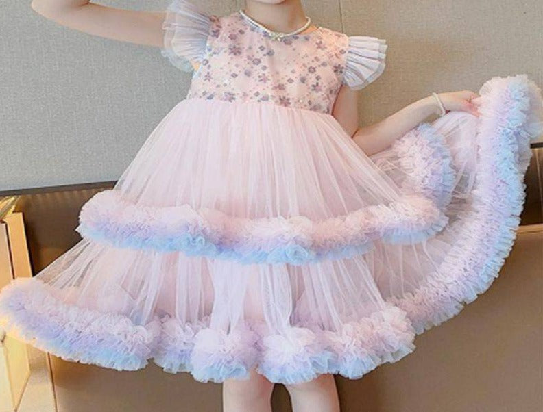 Vestido de fiesta floral de tul escalonado