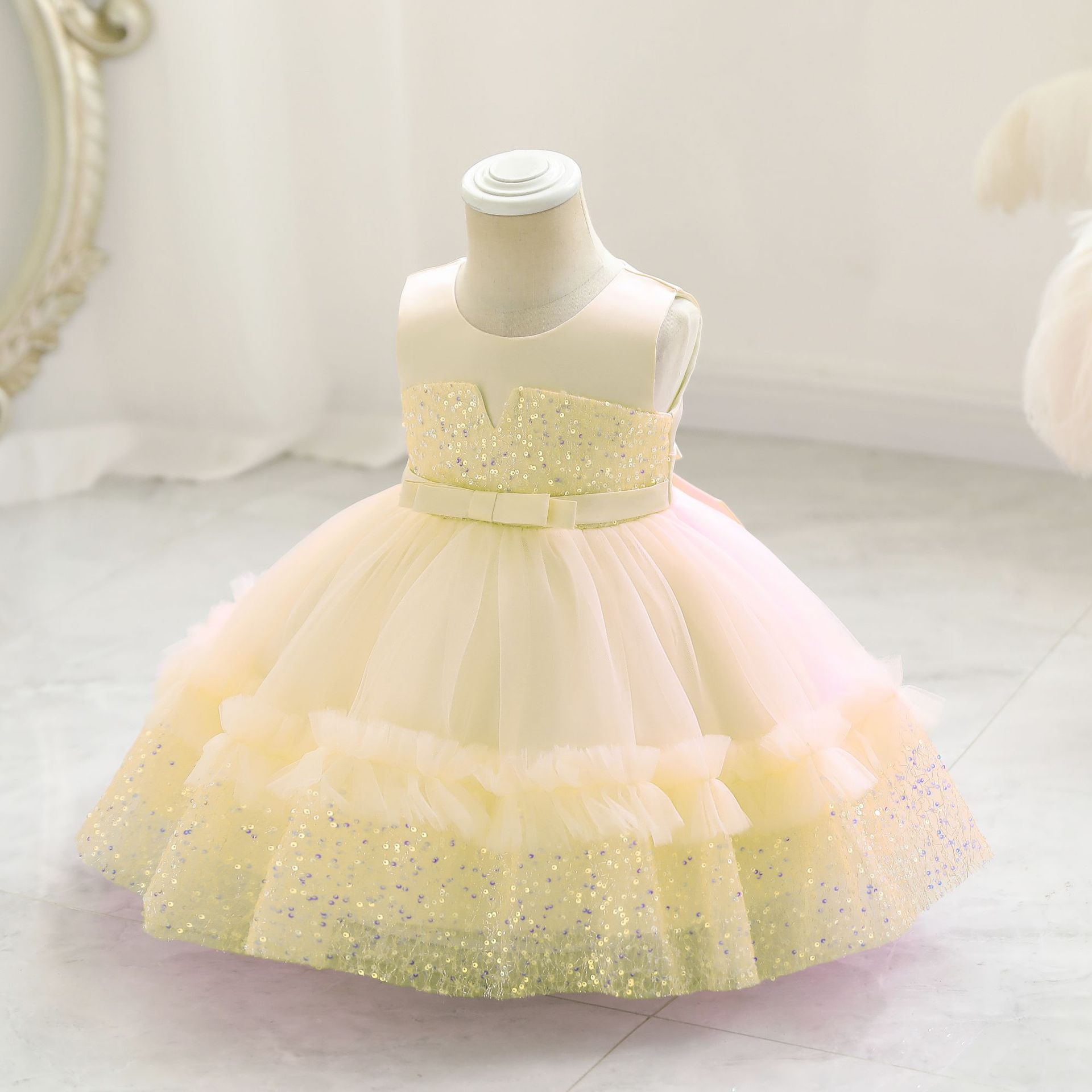 Vestido de Fiesta Infantil de Tul Brillante y Lazo
