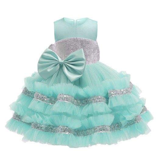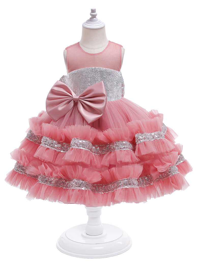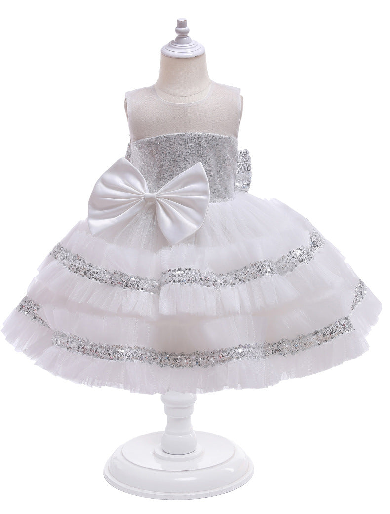 Vestido de Fiesta Infantil de Tul Brillante y Lazo