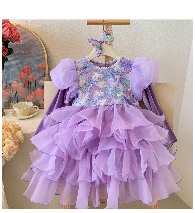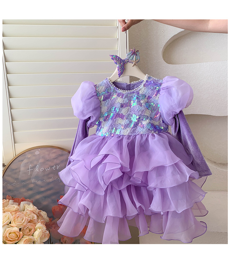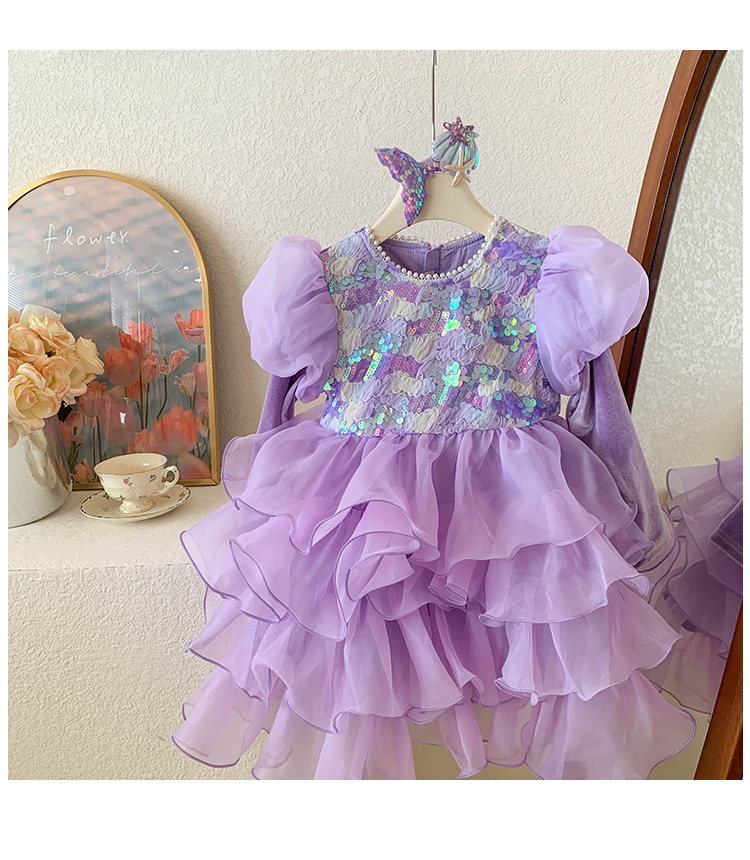✅ Modelo: Vestido de Fiesta Infantil Sirena Morado