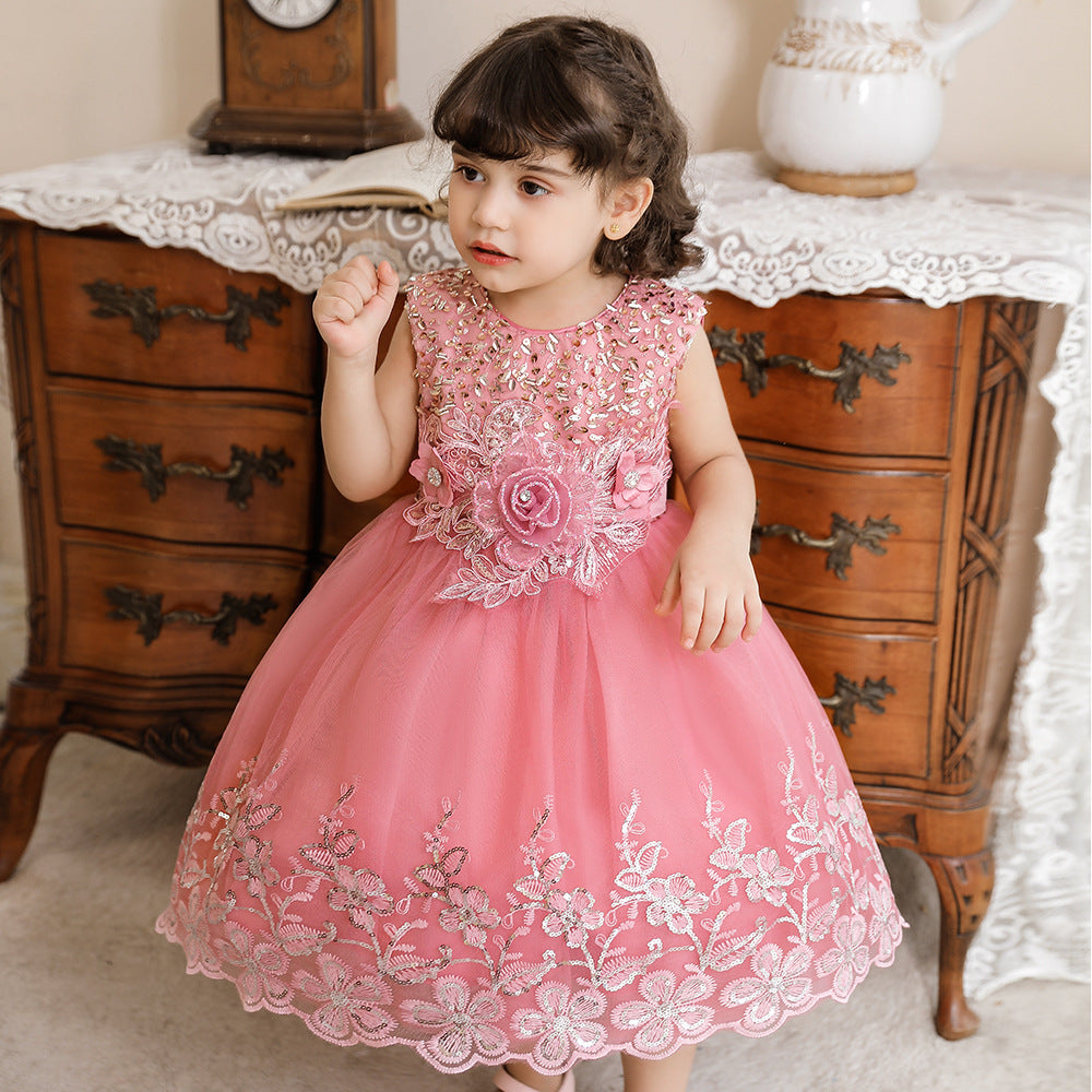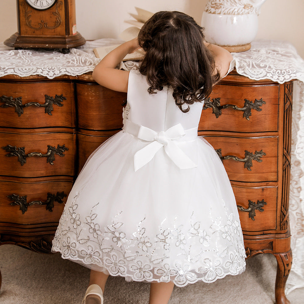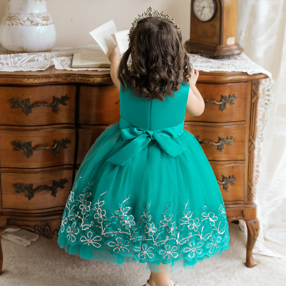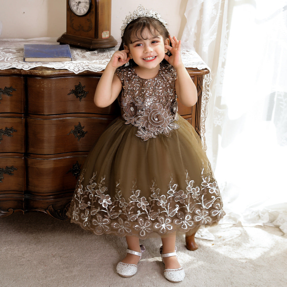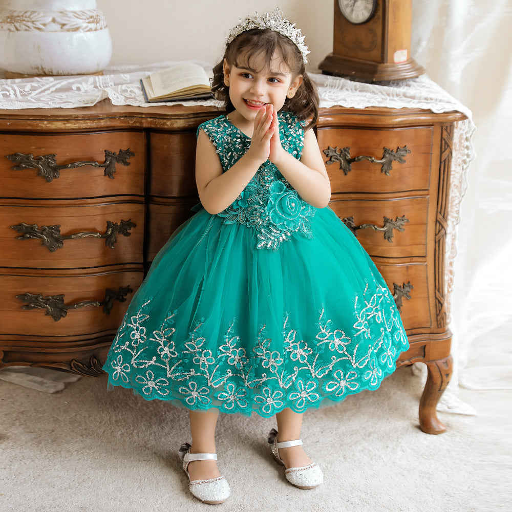 Vestido de Fiesta Infantil Tul Brillante y Flores