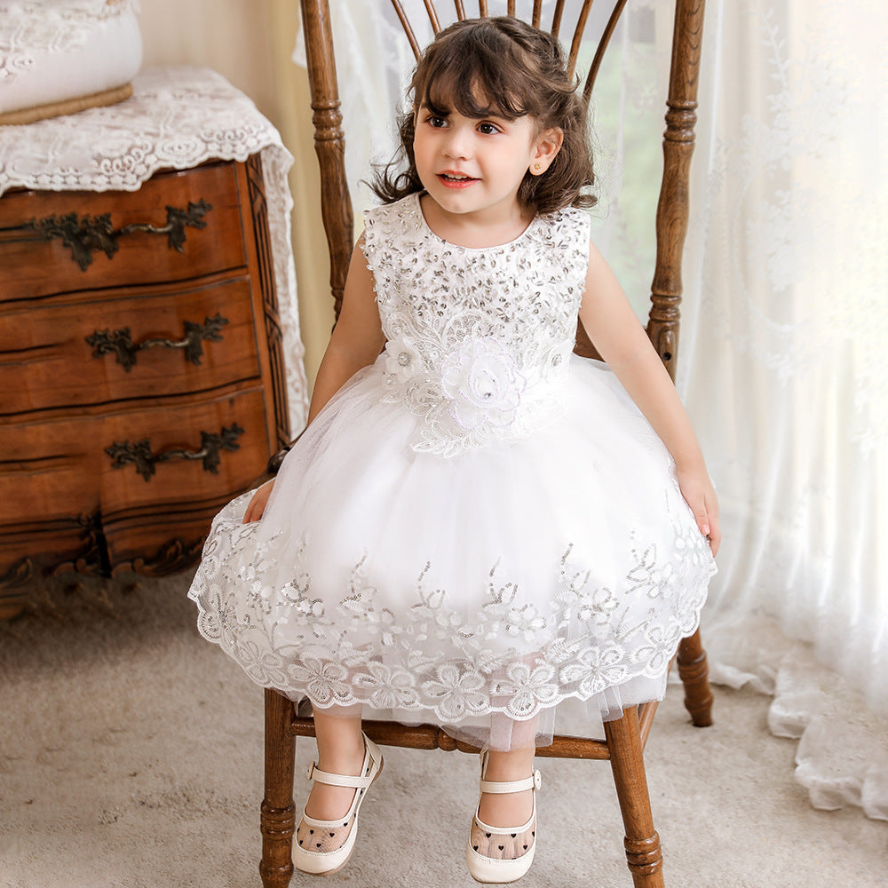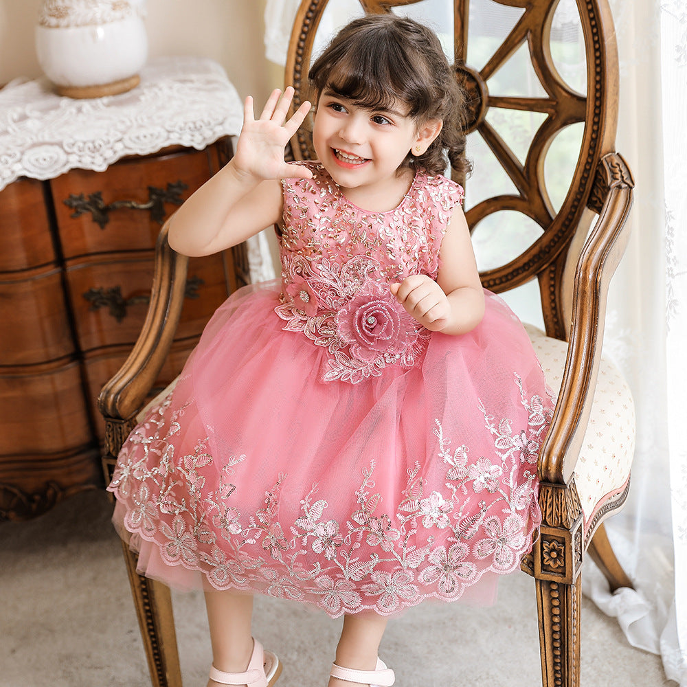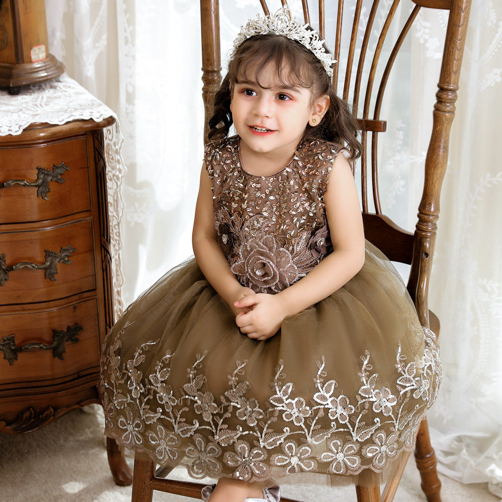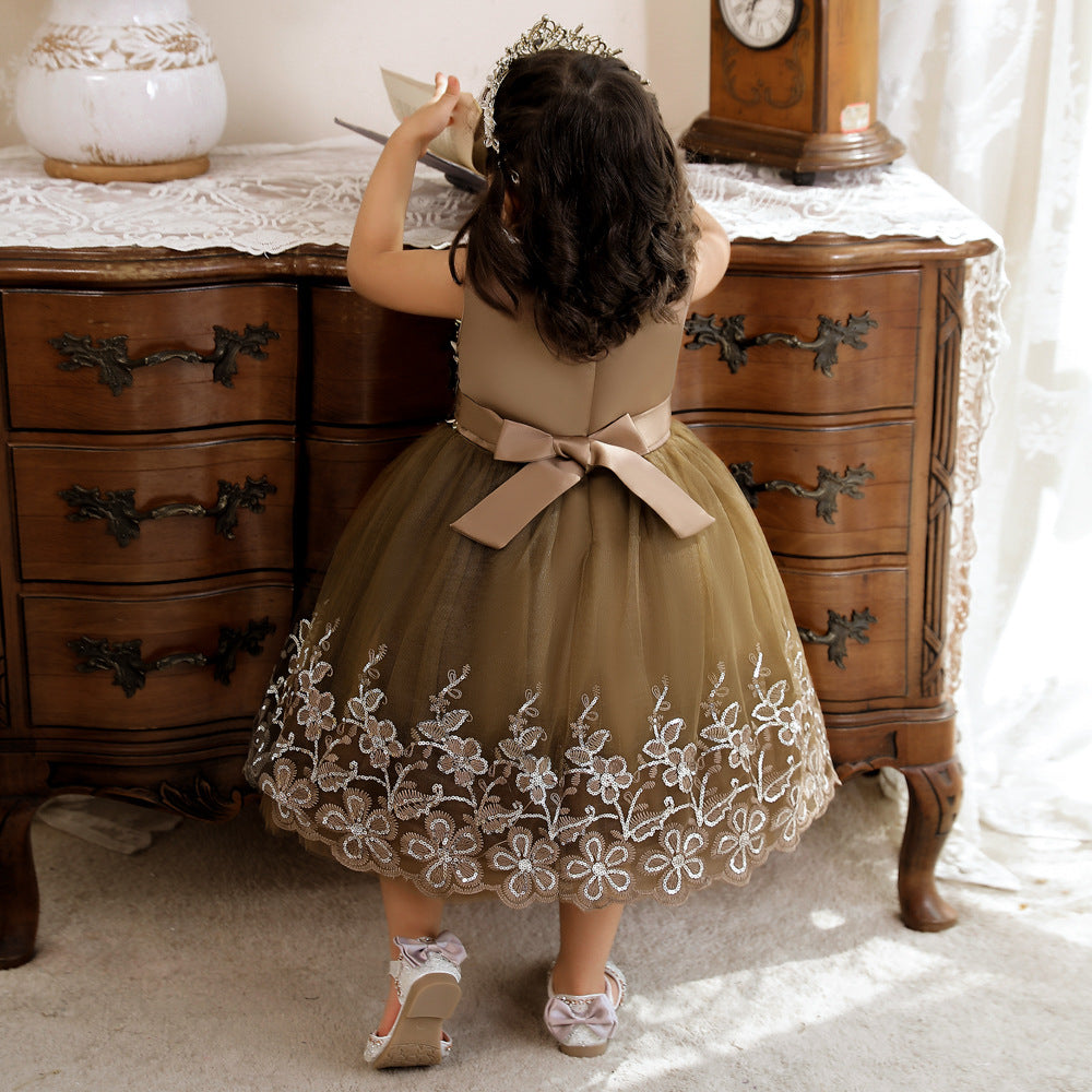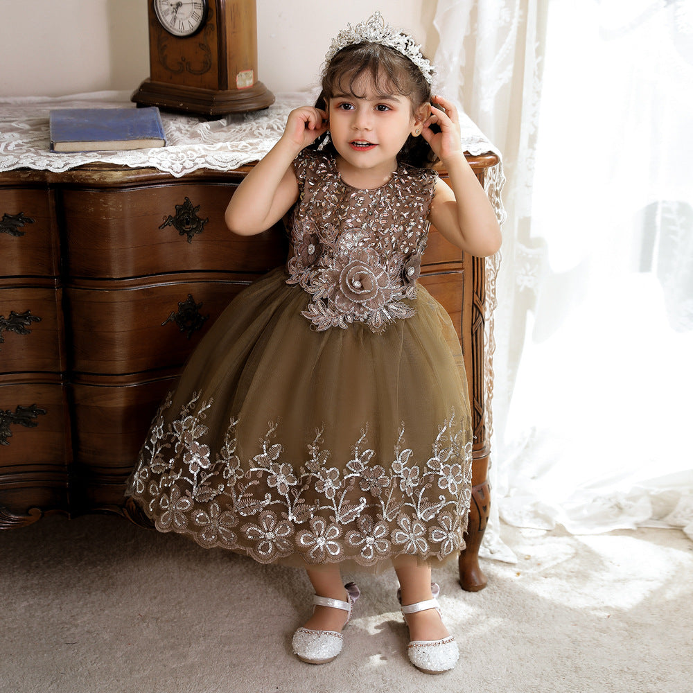 Vestido de Fiesta Infantil Tul Brillante y Flores