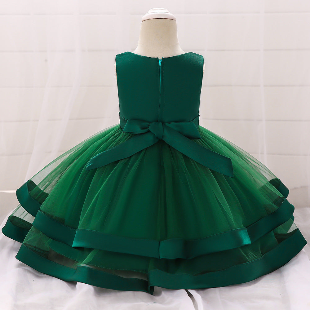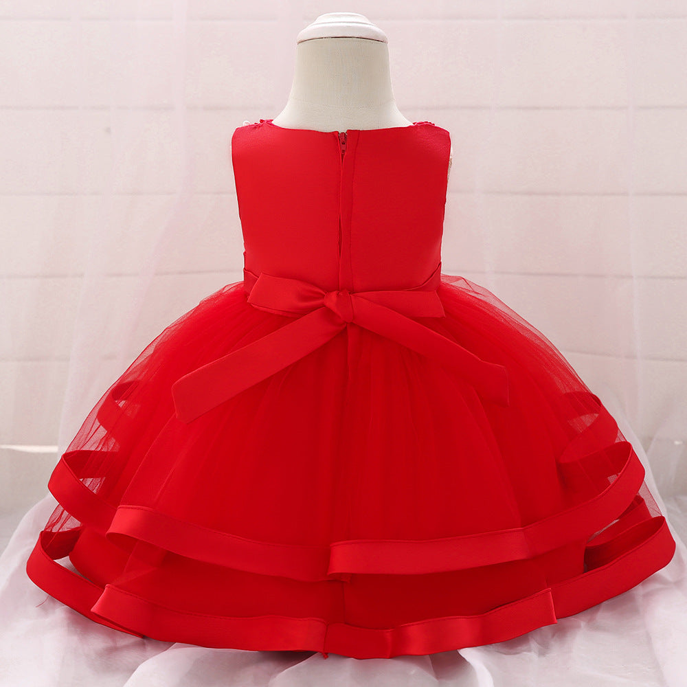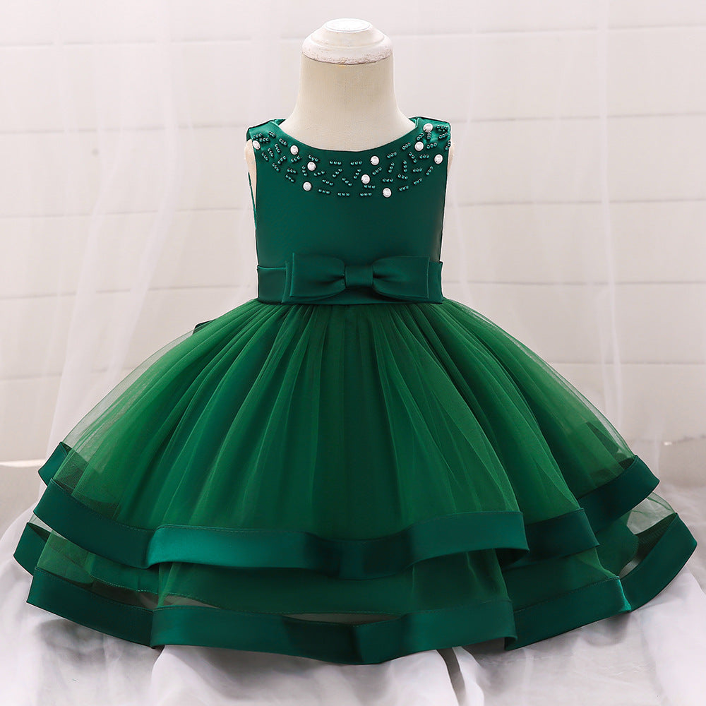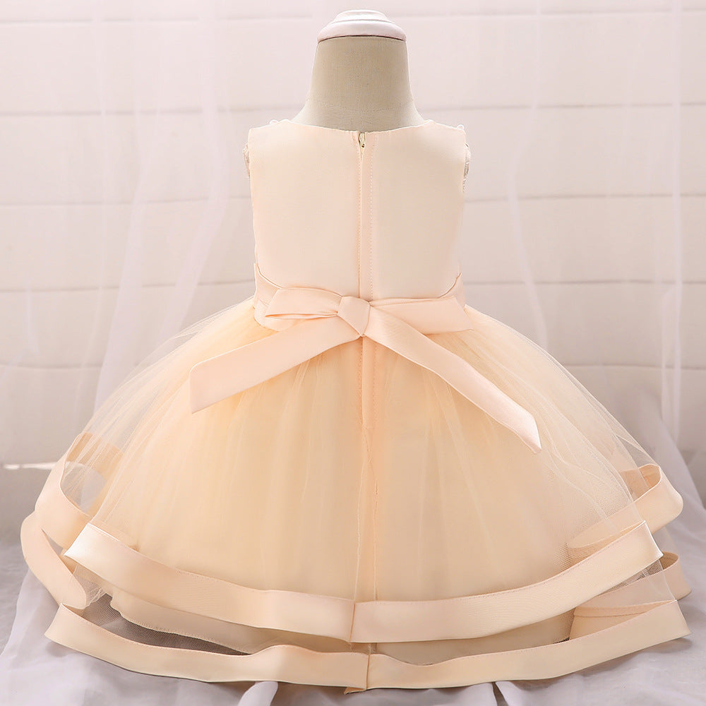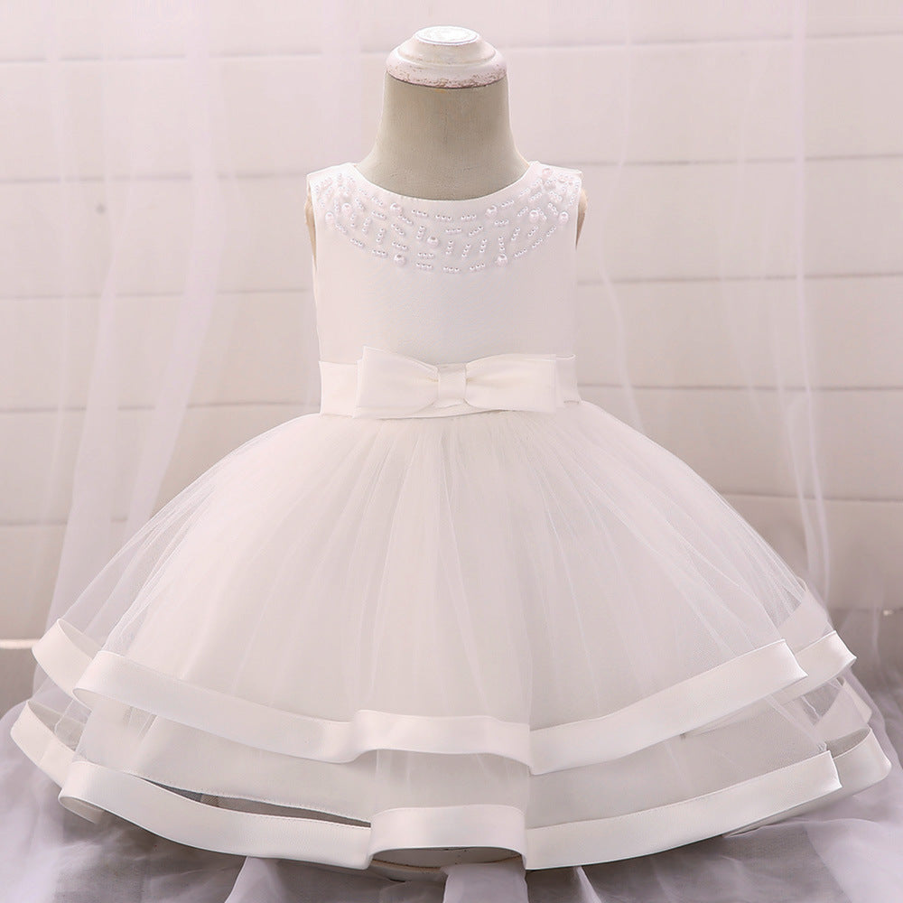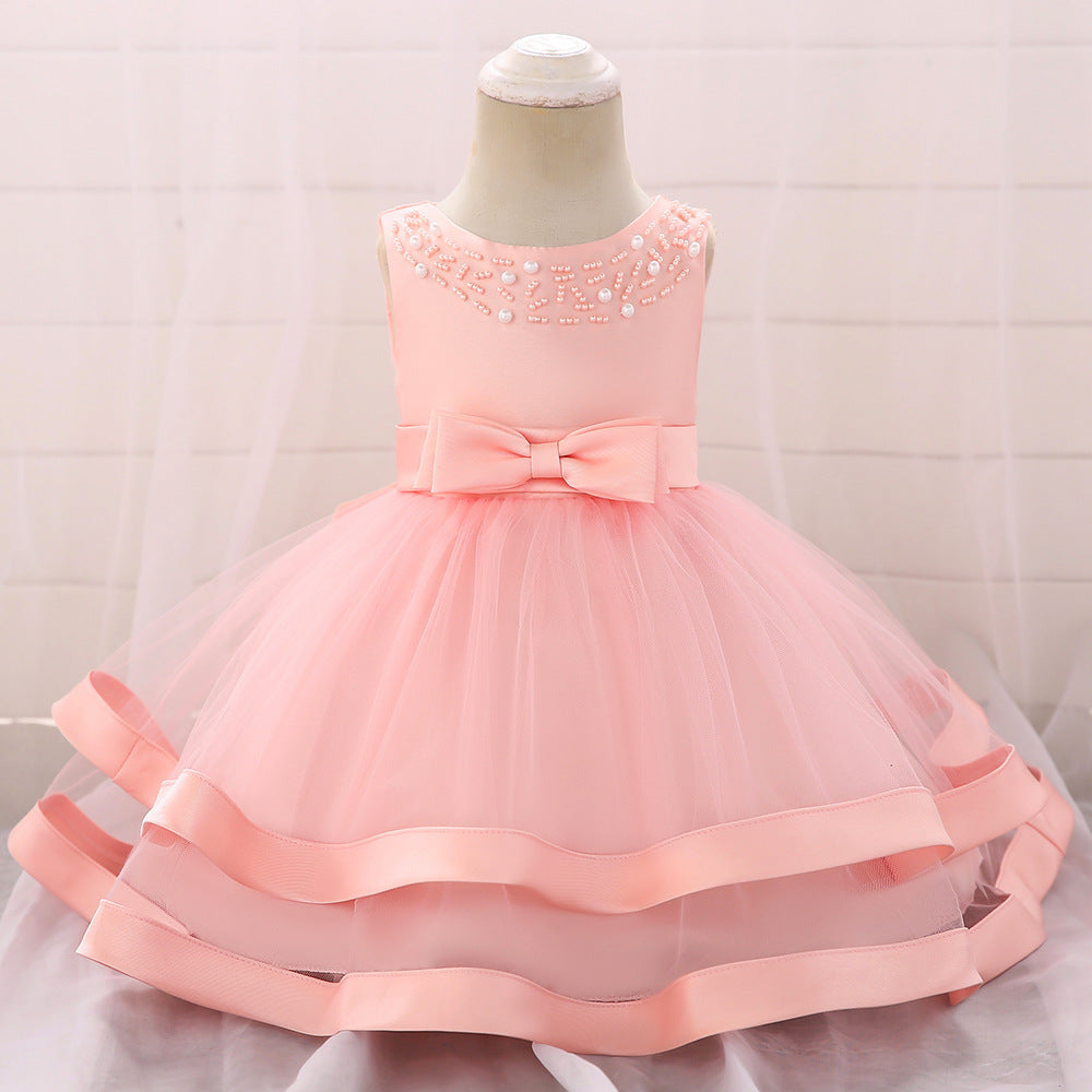 Vestido de Fiesta Infantil Tul Lazo y Perlas