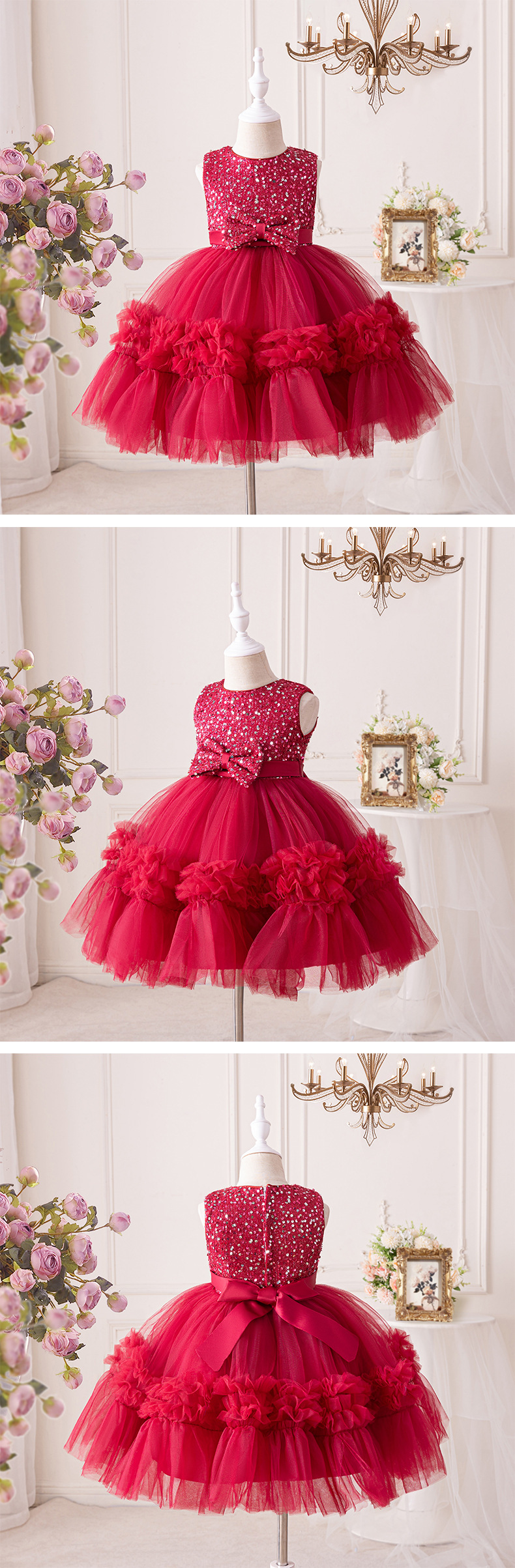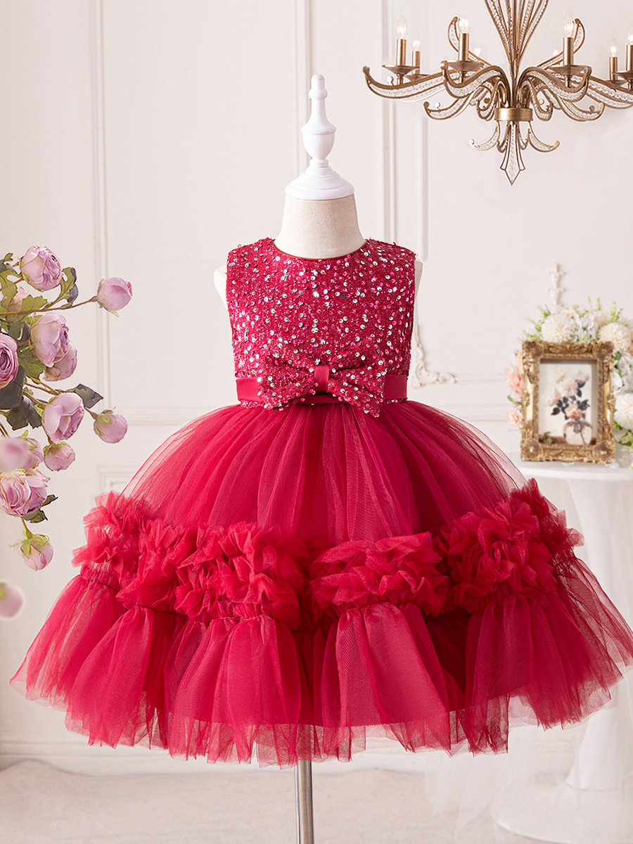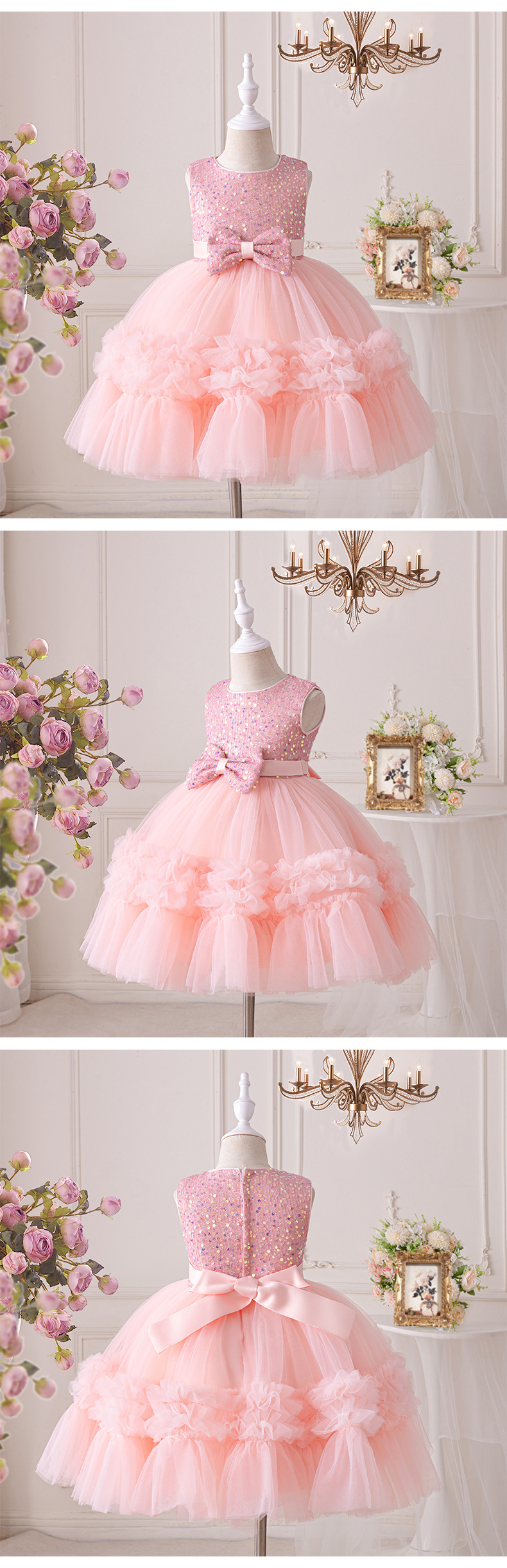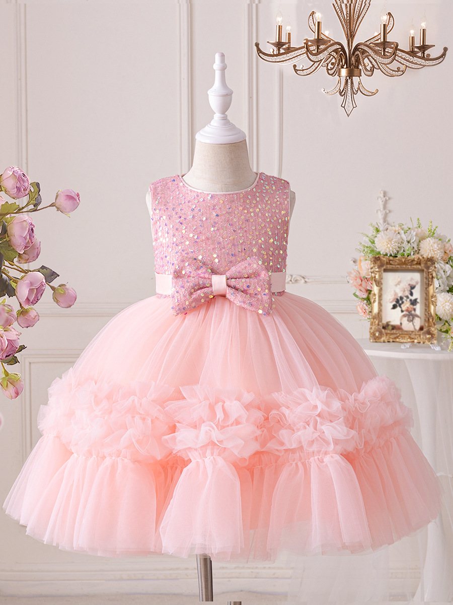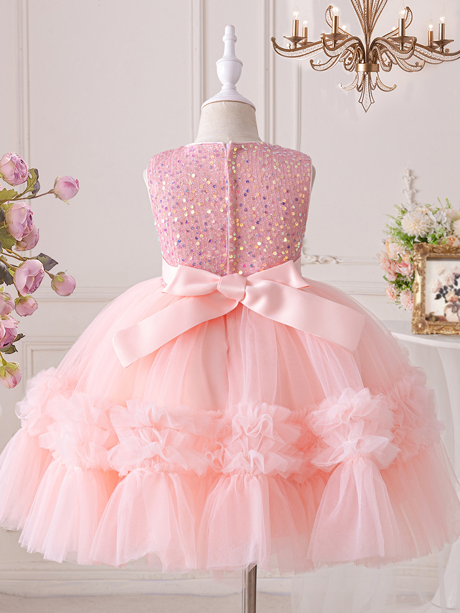 Vestido De Fiesta Infantil Tule e Lacinho Lanejoulas