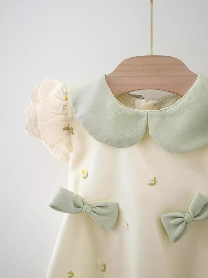 ✅ Modelo: Vestido Infantil Con Flores Y Lazos