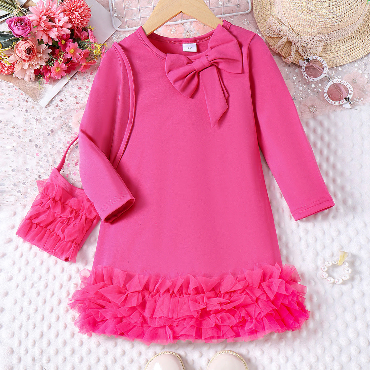 Vestido infantil con lazo rosa