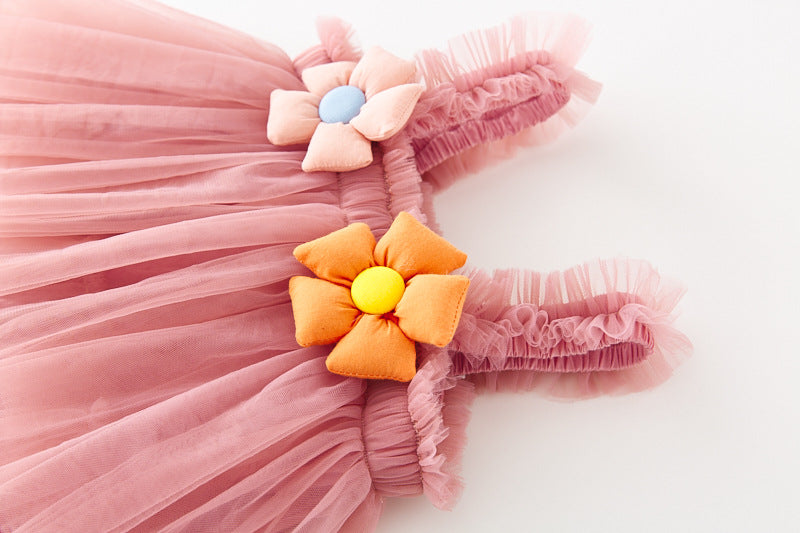 Vestido Infantil con Volantes Tul y Florecitas