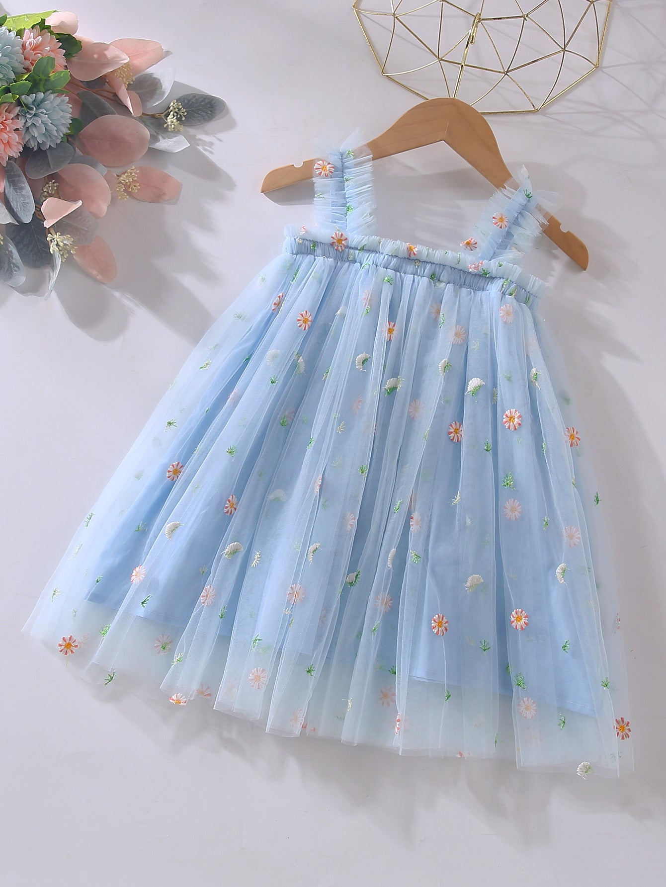 Vestido Infantil De Flores De Tul