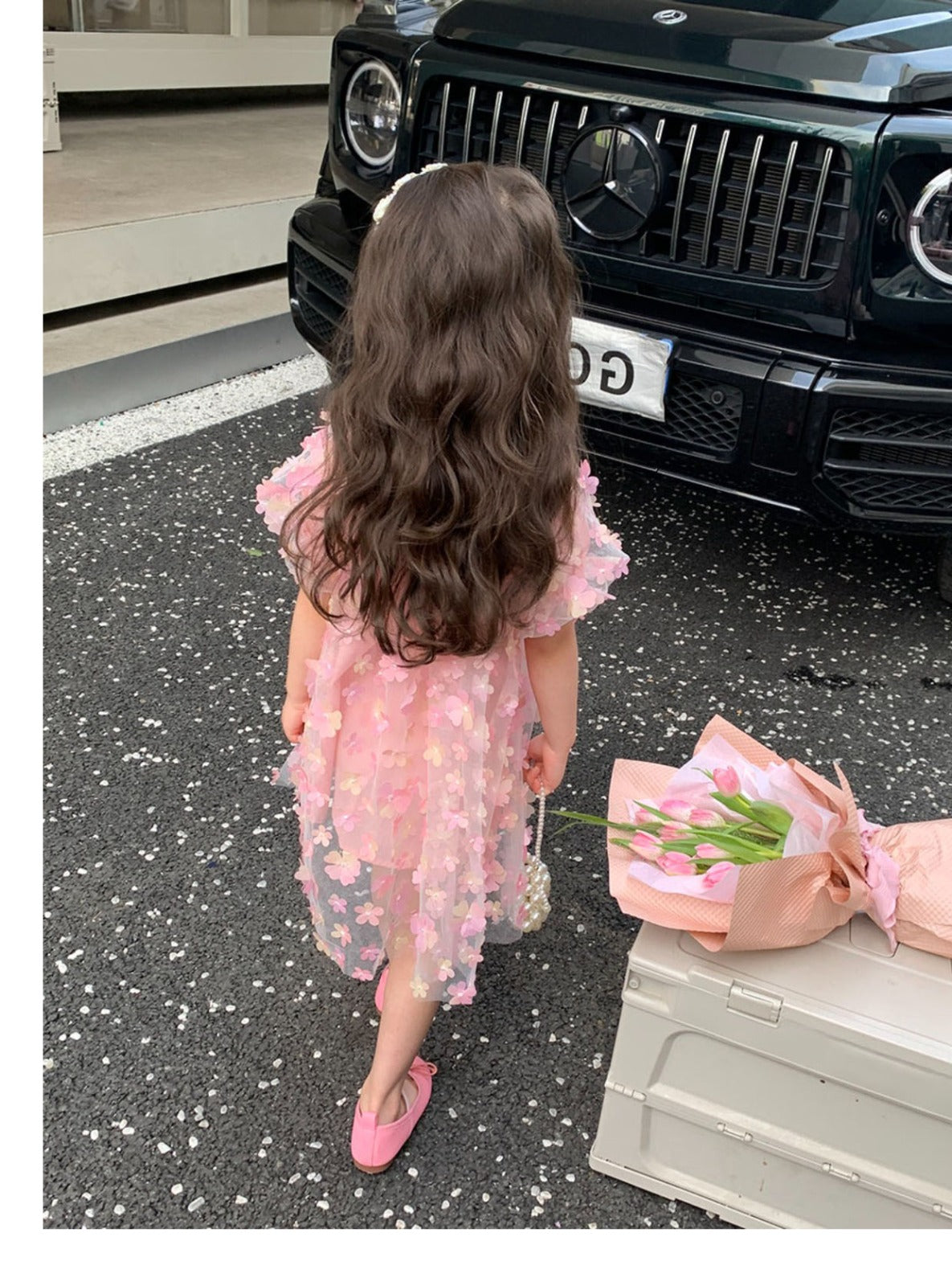Vestido infantil de tul 3D