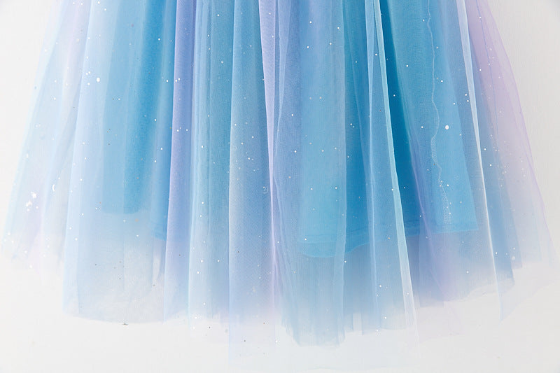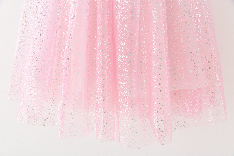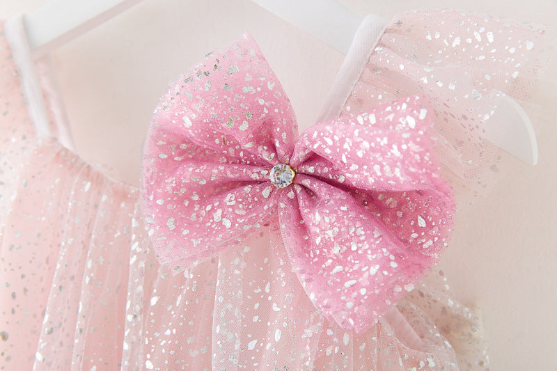 Vestido infantil de tul con purpurina y lazo