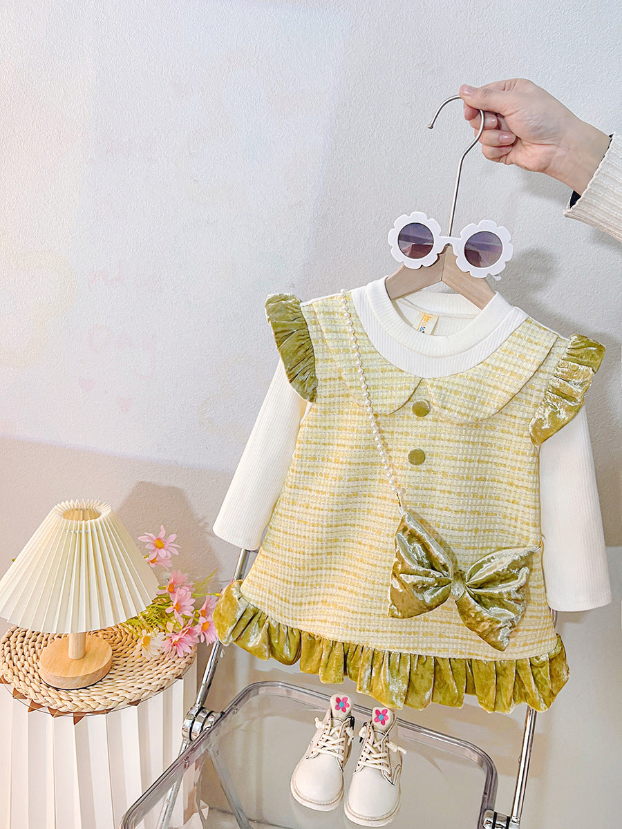 Vestido infantil de tweed y terciopelo