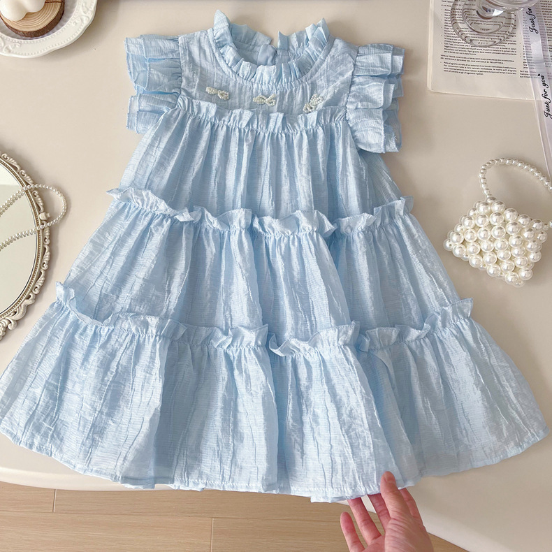 Vestido Infantil en Capas de Color Azul