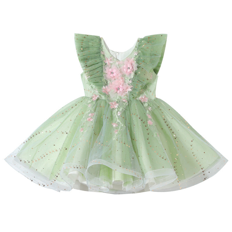 Vestido Infantil Flores Verdes