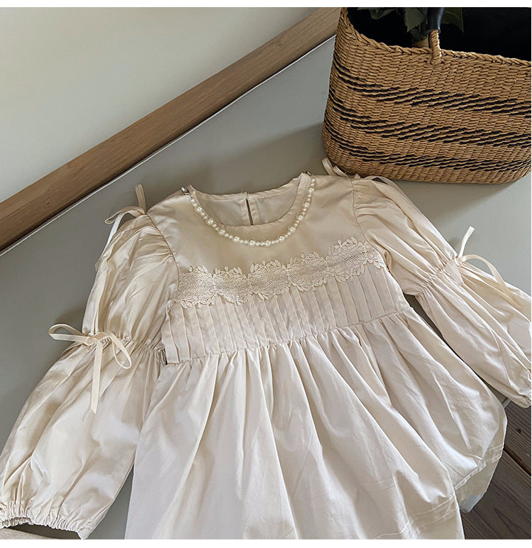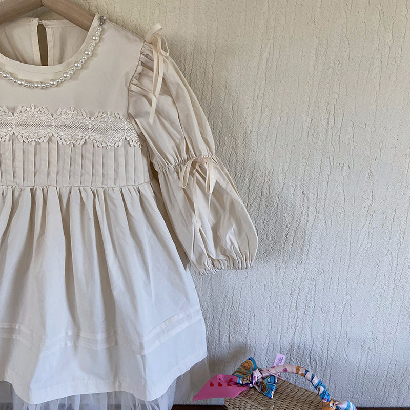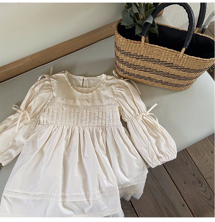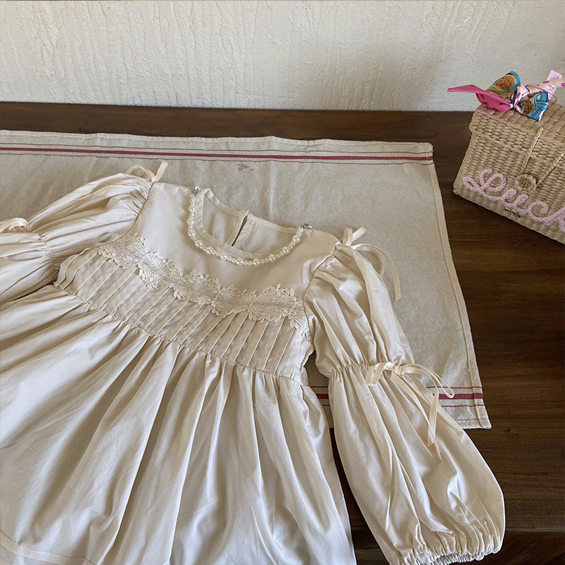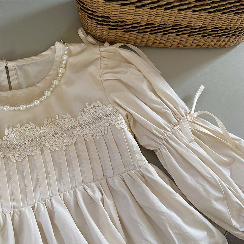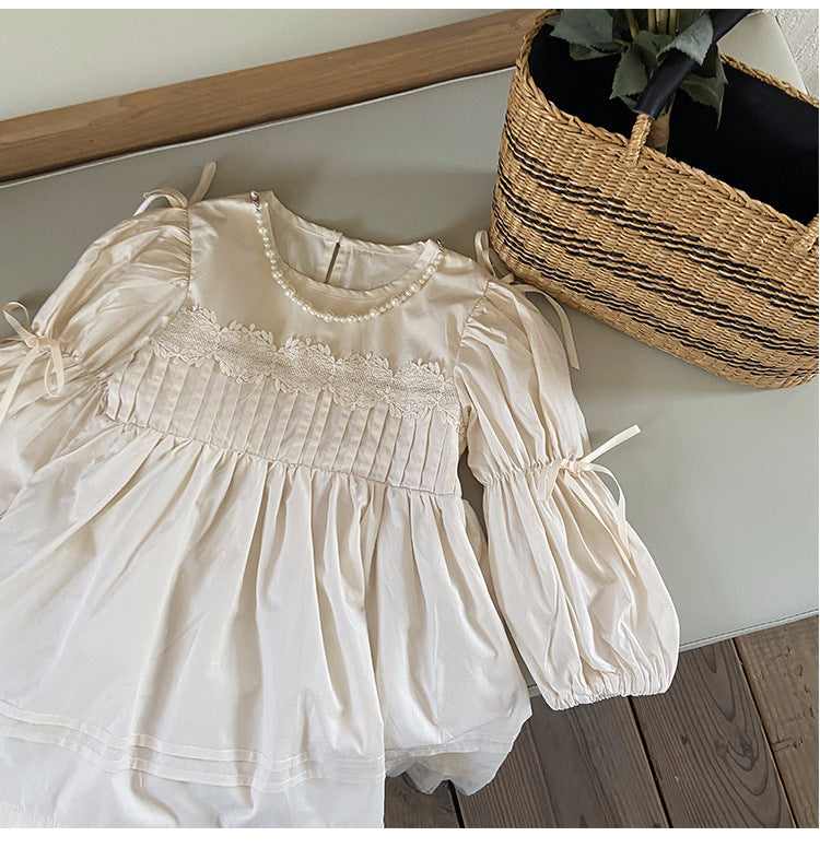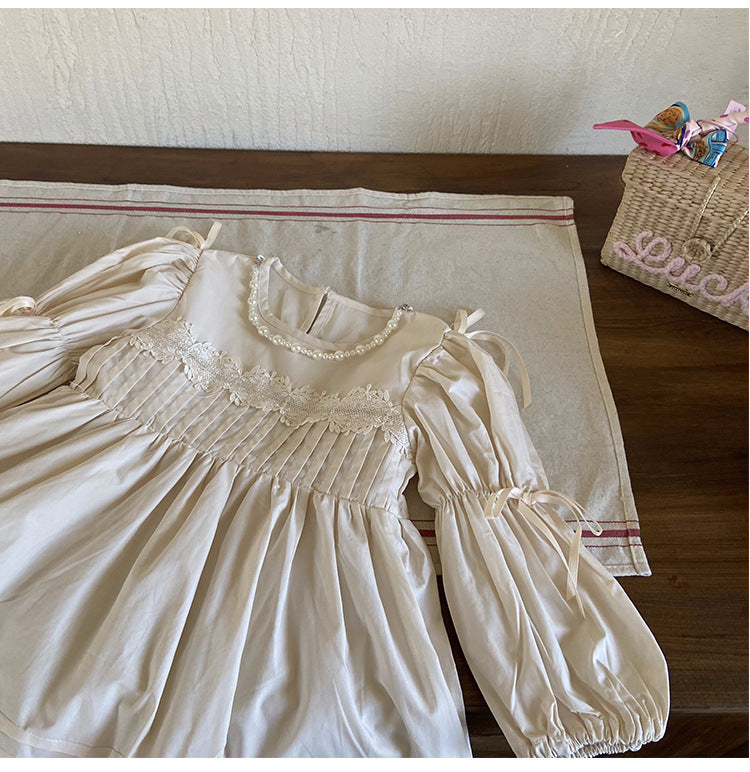 Vestido Infantil Manga Larga Perlas